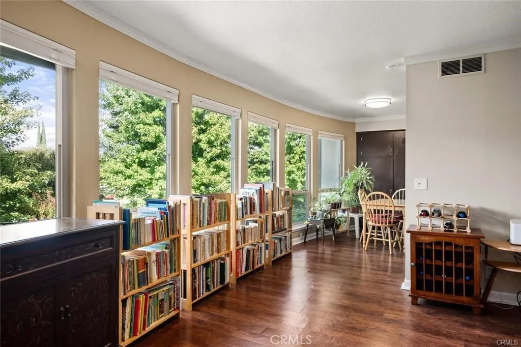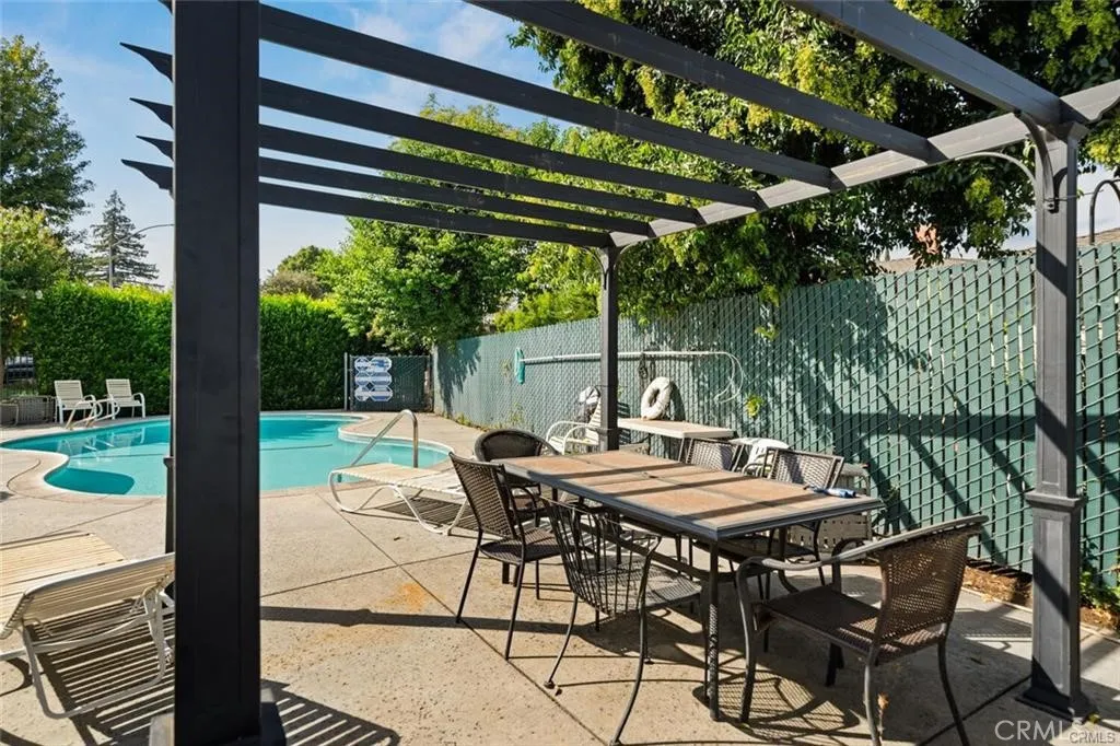 Welcome to easy and convenient living! Tucked away at the end of a quiet cul-de-sac, this beautifully maintained upstairs 2-bedroom, 2-bath condo offers privacy, natural light, and views of trees, distant foothills, and a peaceful courtyard from right inside your very own home! With approximately 1,050 square feet of thoughtfully designed space, the bright living room features a wall of windows that fills the home with sunlight, creating a warm and inviting atmosphere. Wood and laminate flooring add a modern touch, while custom insulating blinds on all six floor-to-ceiling windows enhance both comfort and energy efficiency. The spacious layout includes a generous primary suite with a nice walk-in closet and full en-suite bath. A soaking tub in the guest bathroom provides the perfect place to unwind. Central heating and air, dual-pane windows, and a newer water heater add to the homes comfort and value. The open kitchen is designed for everyday living and entertaining, complete with a gas stove, dishwasher, refrigerator, and a cozy dining nook ideal for morning coffee with a view. This well-kept community offers an in-ground swimming pool, covered parking, additional storage, a bike room, and on-site laundry facilities. Conveniently located near shopping, dining, banking, theaters, schools, and easy freeway access, youll enjoy both tranquility and accessibility. Move-in ready and meticulously cared for, this condo is the perfect blend of comfort, convenience, and low-maintenance living. Schedule your private showing today and see why this home stands out!