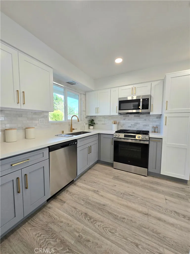 Welcome to your practically Brand New Home! From the Roof to the RHEEM AC & Furnace, AO Smith Water Heater along with the 6 Panel Garage Door everything's been replaced so you have peace of mind. When you arrive you'll immediately notice all the New Drout Tolerant Landscaping, New Exterior Paint and Lighting along with White Dual Pane Windows, New Front Door and Gate with Ring doorbell & Epoxy front Porch. Once you enter you'll be greeted with a completely open floor plan and Brand New Kitchen with Gray and White Soft Close Shaker Cabinets with a Spice Rack & Pantry, Stainless Steel Sink and GE Appliances with Flat Top GAS Stove and Honed Marble backsplash that wraps all the way around the window plus a coffee bar that can double as a Kitchen Island. Interior also features New Flooring, Paint, Recess Lighting, Chandelier, and Ceiling Fans. The bathroom has been completely remodeled and has the same Honed Marble Backsplash as the kitchen. There is an attached Laundry Room that has been completely redone with Wainscot Paneling, Laundry Hookups and New Flooring. The Backyard is complete with Double French Doors, huge covered aluminum patio cover with epoxy flooring ready to entertain all year long with a completely fenced in private yard finished with mulch, rock planters, and shed. Located in Sun City Civic 55+ Community with Low Taxes and Low HOA. This one won't last at this price come see it before it's gone!