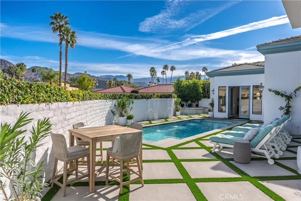 Completely Reimagined Luxury Home in the Heart of Indian Wells. This stunning 4-bedroom, 6-bathroom residence offers approximately 4,000 square feet of refined living space on an oversized 12,000 square foot lot. No detail was overlooked and major systems have been upgraded, including HVAC, pool, and professional landscaping. Designed for exceptional desert living, this private compound showcases breathtaking mountain views and seamless indoor-outdoor entertaining. At the heart of the home is an expansive great room featuring a full bar and generous entertaining area, perfect for hosting gatherings or relaxing in style. Elegant flooring and designer light fixtures elevate the modern, sophisticated interiors. The resort-style backyard boasts a sparkling quartz pool, spa, and fire pit, as well as ample space to enjoy the stunning desert surroundings. Ideally located in the heart of Indian Wells with exceptionally low HOA dues, this turnkey property is just moments from world-class golf, fine dining, and premier shopping. A rare opportunity to own a beautifully upgraded home in one of the deserts most desirable communities.