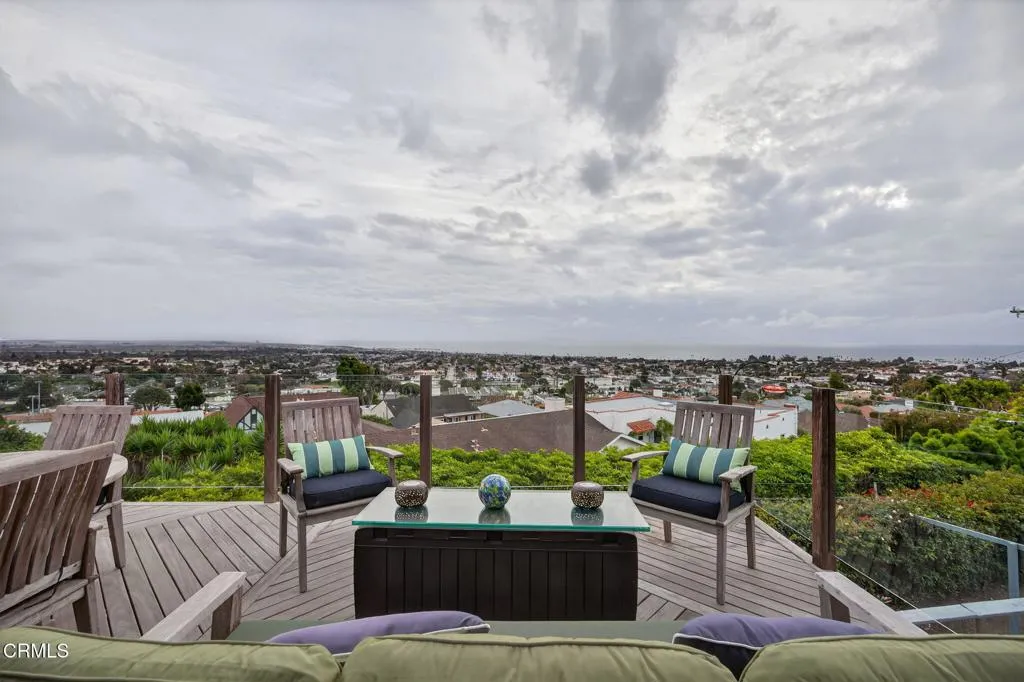 Perched high above Ventura, this spectacular hillside retreat captures some of the most breathtaking ocean views on the California coast. With a rare 180 panorama stretching across the Pacific Ocean, the Channel Islands, and the sparkling city lights of Ventura below, the setting is simply unforgettable. This beautifully positioned three-bedroom, two-bathroom home is designed to showcase its incredible surroundings. The living room, complete with a cozy fireplace, and the updated kitchen with a walk-in pantry both open toward sweeping coastal vistas, creating a light-filled space that feels seamlessly connected to the outdoors. The primary bedroom with walk-in closet on the main floor offers convenience and ease. Step onto the expansive deck off the living room and kitchen to soak in the fresh ocean breeze, stunning sunsets, and ever-changing ocean scenery -- the perfect place to relax or entertain against a truly dramatic backdrop. Situated on a nice size lot, the property offers exceptional privacy and the underground utilities allow for uninterrupted views. An exterior service elevator provides added convenience, while the long driveway, two-car garage, and generous parking area offer plenty of space for guests, recreational vehicles, or multiple cars. Additional upgrades include a tankless water heater, water softener, and EV charger. This is more than a home -- it's a rare coastal sanctuary where panoramic beauty, privacy, and hillside living come together in one extraordinary Ventura location.