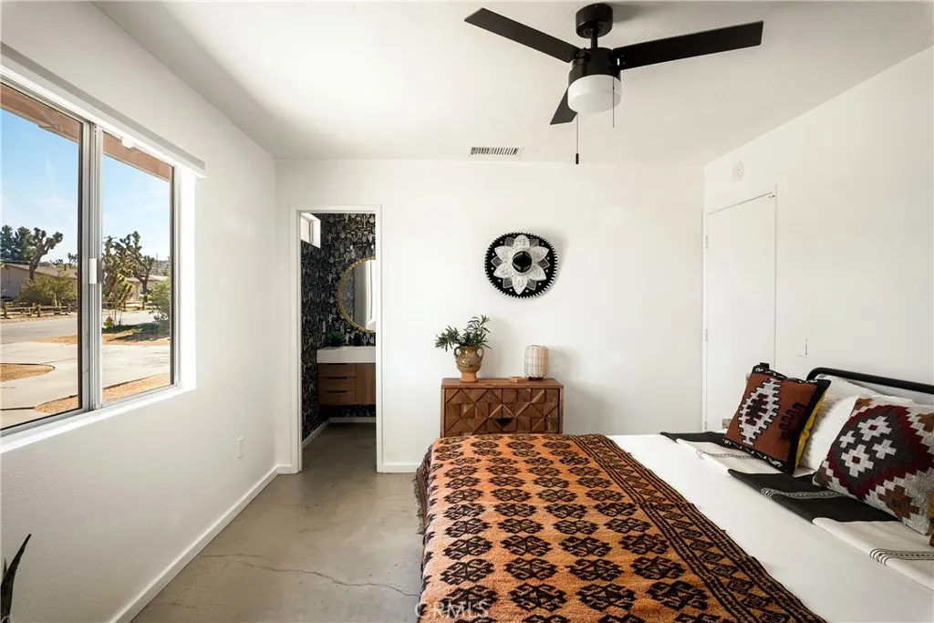 Successful short-term rental opportunity in the heart of Old Town Yucca Valley. Welcome to Casa Chica, a fully furnished 2-bedroom, 2-bathroom home offering proven short-term rental income potential and exceptional character throughout. This turnkey property is being sold fully furnished (with a few seller exclusions), making it ideal as a second home, primary residence, or investment property. Inspired by travels throughout Mexico, the home reflects a modern Mexico City vibe with vibrant colors and design elements that celebrate Mexican culture, heritage, and craftsmanship while maintaining a warm, inviting desert aesthetic. Interior features include polished concrete floors throughout and beautifully remodeled bathrooms. The thoughtful layout provides comfortable bedrooms and functional living spaces designed for both everyday living and guest enjoyment. The fully fenced backyard offers privacy and mountain views in every direction. In addition to the large spa, the outdoor space includes concrete seating and entertaining areas, perfect for gathering and enjoying the desert lifestyle under the stars. The property is connected to city water, natural gas, and public sewer, a valuable convenience in the High Desert. A large attached garage provides additional storage, parking, or potential flex space with a EV Charger. Located in Old Town Yucca Valley, just minutes from local shops, dining, and a short drive to Joshua Tree National Park. A rare opportunity to own a character-filled, income-producing desert retreat with versatility and charm.