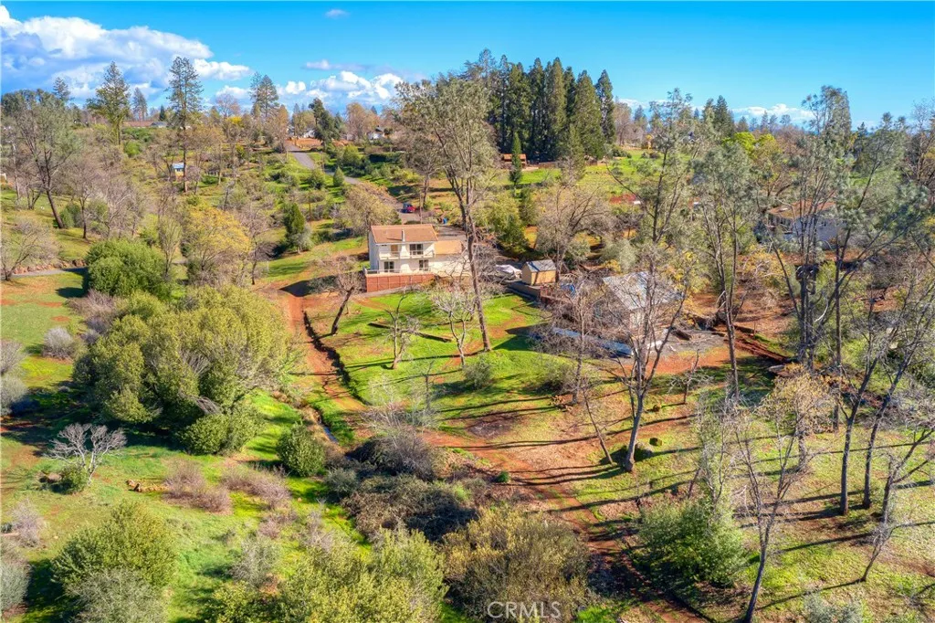 10 minutes from Chico you will find this one of a kind property a private oasis in Paradise. Two homes on 5.19 acres in lower Paradise on a private road with sunset views, gorgeous treed setting and meandering creeks and waterfalls. Located minutes off the Skyway with newer homes in the area. The main home is 1800 sf., 3bdrm - 2.5bath two story Spanish-style with classic tile, custom built in 1979. Large country kitchen with tile countertops and a center island and built in hutch. The living room fireplace has a gas insert with amazing views out every window that capture the natural light and peaceful setting. The upstairs bedrooms each have a Juliet balcony to add to the charm. Upgrades include new windows in 2017, carpets and attic insulation in 2019 and new HVAC unit in 2022. Trex decks adorn front and rear of the home with a clay tile roof. The home is made of almost all fire-resistant materials. The fully outfitted ~800 sf guest cabin, built in 2000, has a lifetime metal roof, ten-foot walls, cathedral pine ceilings, a gas fireplace, and a large wrap-around redwood deck. The guest cabin includes multiple well-designed closets and crawl space storage. A new HVAC unit was installed in 2022. Both homes received a high-quality exterior paint job in 2019. The property boasts a gentle slope and walking trails throughout to enjoy the peaceful setting and wildlife - deer, turkeys, squirrels, rabbits, quail and many more critters. There are endless possibilities with the property for the new owners. In todays rental market the guest home would rent for $1500 a month and has its