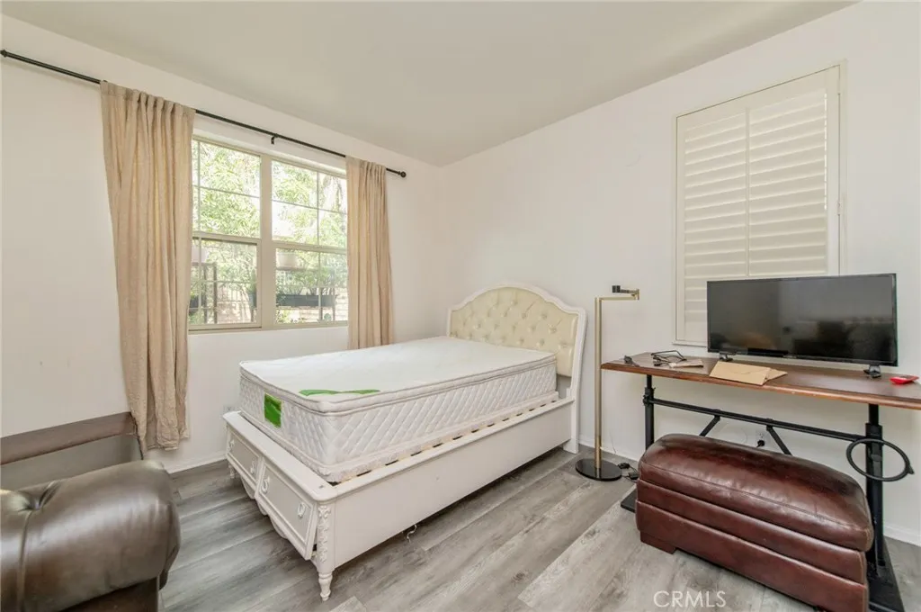 Welcome to 579 Boxwood Lane, a spacious and thoughtfully designed 5-bedroom residence located in the highly sought after Rosedale community of Azusa, offering scenic hillside views and resort style amenities. This well maintained home features an ideal layout with two bedrooms on the main level and three additional bedrooms upstairs, providing flexibility for multi generational living, guests, or a dedicated home office setup. Upon entry, warm wood flooring, recessed lighting, and elegant archways create a welcoming atmosphere. The open concept kitchen is designed for both daily living and entertaining, showcasing an oversized granite island with bar seating, extensive cabinetry, stainless steel appliances, gas cooktop with professional hood, built in microwave, and a spacious pantry. The kitchen flows seamlessly into the dining area, where sliding glass doors open to a private backyard. The backyard offers a covered patio structure, generous concrete hardscape, and a lawn area ideal for outdoor dining, relaxation, or gatherings. The elevated positioning allows for pleasant neighborhood and hillside views. Upstairs, a large loft provides additional living space and is perfectly suited as a media room, game room, or secondary family area. The primary suite serves as a true retreat, featuring dual vanities, a centrally positioned soaking tub, and a beautifully upgraded walk-in shower with marble inspired finishes and frameless glass enclosure. Select bathrooms include modern smart toilet upgrades for added comfort. Additional highlights include epoxy finished garage flooring,