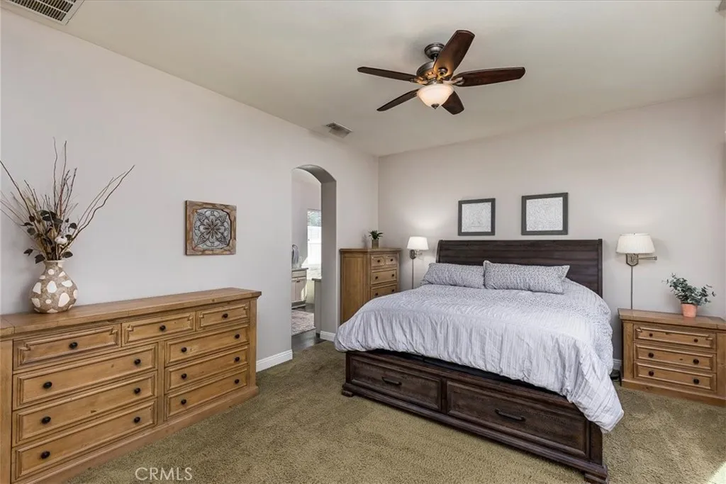 SELLERS SAY....BRING US A REASONABLE OFFER!! STUNNING SINGLE STORY***5 BEDROOM WITH 2,766 SQ FT of LIVING SPACE***POOL & SPA***FULLY OWNED SOLAR***RV PARKING*** 3 CAR GARAGE with EPOXY COATED FLOORS *** OVER 720 SFT OF RV PARKING*** located in the coveted COUNTRY GATE COMMUNITY WITH NO HOA AND LOW TAXES!! Luscious landscaping in front and back yards, built in barbeque with gas, water hookup and prep sink!! Sparkling saltwater pebble surface pool and raised spillover spa with separate rock waterfall. Sturdy 112 SFT shed offers additional convenience/storage. Wood framed Gazebo in back yard creates an inviting private space for enjoying a meal or simply relaxing! Vinyl Fencing surrounds home. Front wrap-around porch is a favorite place to unwind on the porch swing to view the gorgeous sunsets! Retractable screens on exterior doors. Upon entering the home, you are welcomed with 10' ceilings and windows with lovely plantation shutters. Front room can be used as a separate living or formal room. Enter into a bright chef's kitchen and dining nook adjacent with newly painted cabinets, hardware (including soft close hinges), new stainless steel 5 burner gas stove, overhead microwave and refrigerator! Granite countertops adorn island which offers ample prep space AND prep sink for those large family & friend gatherings. Separate large counter with more cabinets and drawers with pull up seating. Enjoy the custom built entertainment center and surround sound built in speakers. Raised hearth with gas fireplace sets a comfortable gathering area. Separate large dining room located off ki