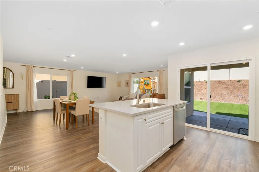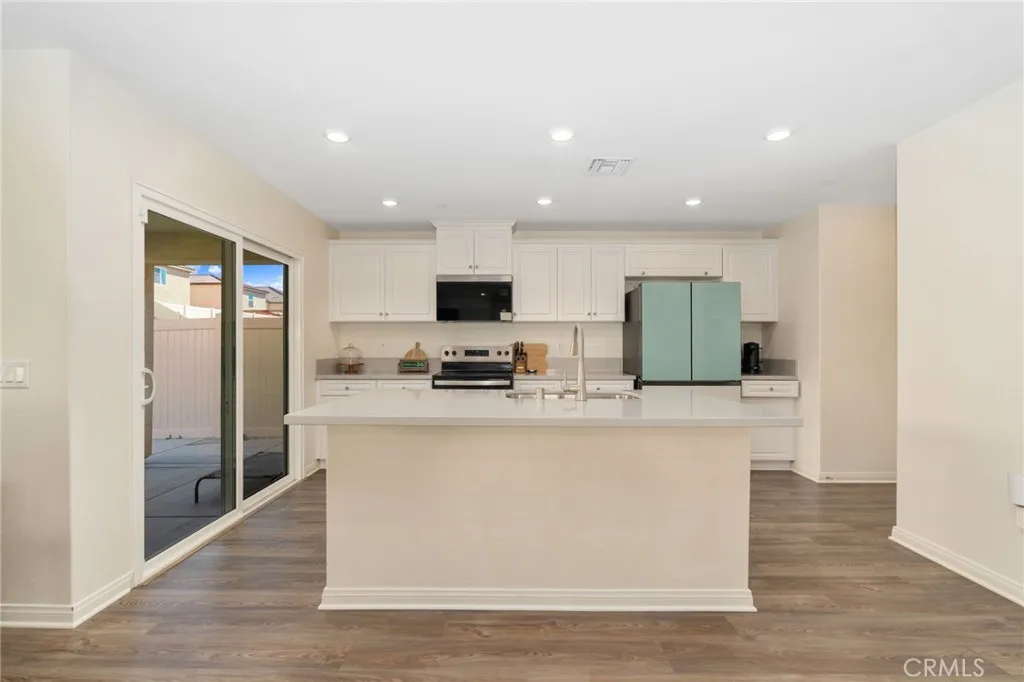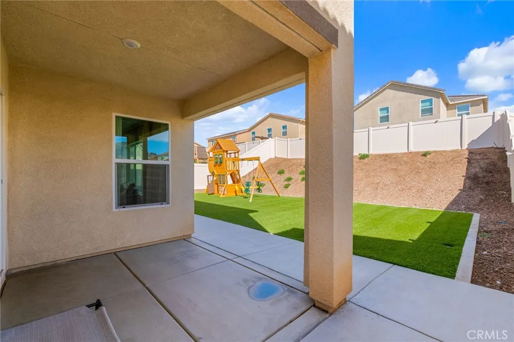 Spacious 5-bedroom, 3-bathroom two-story home located in the growing community of Homeland. This well-maintained property features an open floor plan with an expansive kitchen that flows seamlessly into the main living areas, ideal for everyday living and entertaining. A convenient downstairs bedroom and full bathroom offer flexibility for guests or multi-generational living. Upstairs, youll find generously sized bedrooms with ample space for the whole family. The backyard has been recently improved, providing a great setting for outdoor gatherings, play, or relaxation. The fully landscaped front yard enhances curb appeal, while the 2-car garage and extended driveway offer additional parking for up to four vehicles total. Situated near local schools and a community park, this home combines comfort and convenience with no HOA. Solar panels are leased, helping support energy efficiency.