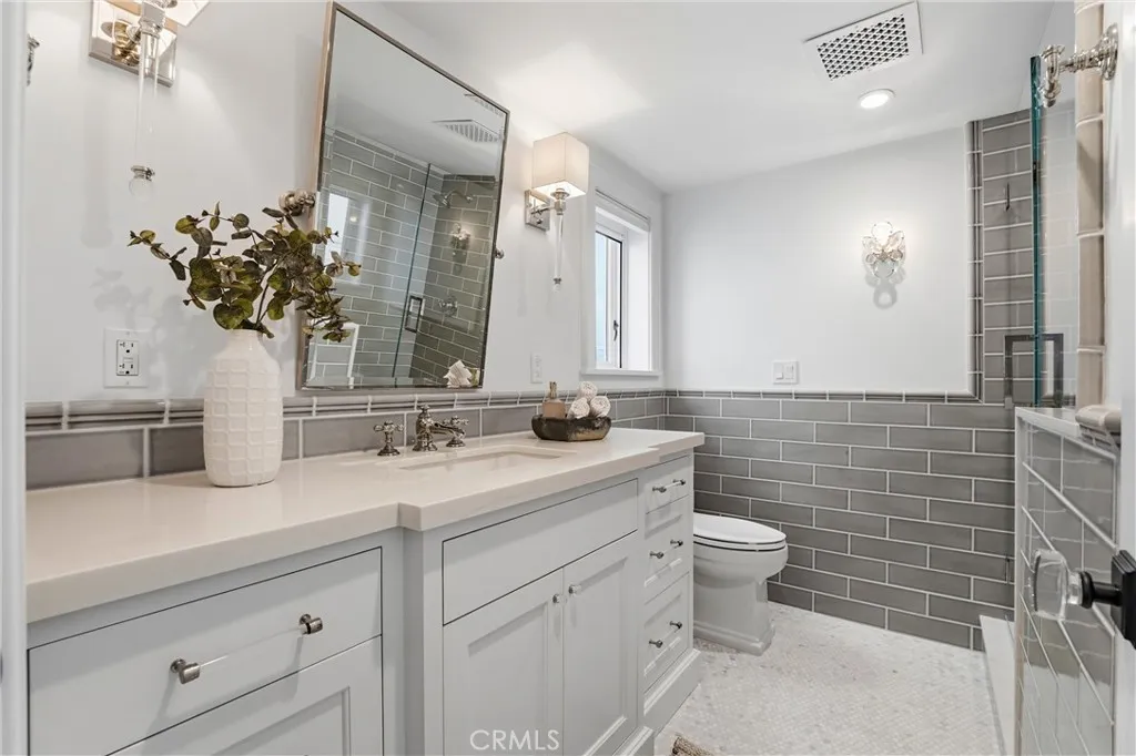 Just several blocks from world-class beaches, this exceptional ocean-view coastal cottage is ideally located in Woods Coveone of the most desirable communities in Laguna Beach. It blends timeless elegance with relaxed coastal living. Remodeled by award-winning designer Andra Miller, the home pairs classic East Coast charm with elevated California style and beautiful views of the Pacific coastline, creating a residence that feels both refined and inviting. Spanning approximately 2,200 square feet, the three-bedroom, three-and-a-half-bath residence features a thoughtful design to maximize light and privacy, living far beyond its footprint with warmth, character, and intention at every turn. The entry level includes the primary suite, a secondary bedroom with custom bookshelves and a private bath, and a laundry room. The lower level offers a private guest suite complete with its own bath, a Douglas firlined walk-in closet, and direct garage access. A spacious two-car garage with storage cabinets and a Level 2 electric car charger adds convenience and functionality. The primary bath is spa-inspired, featuring a freestanding soaking tub, heated marble flooring, dual vanities, a walk-in closet, and a steam shower. The primary bedroom also enjoys beautiful ocean views. The top floor showcases a designer kitchen open to the living and dining areas, complete with a soapstone island, custom cabinetry with glass uppers, a farmhouse sink, custom banquette, built-in beverage refrigerator, and premium appliances, including a six-burner Viking range with griddle and a Sub-Zero refrigerato