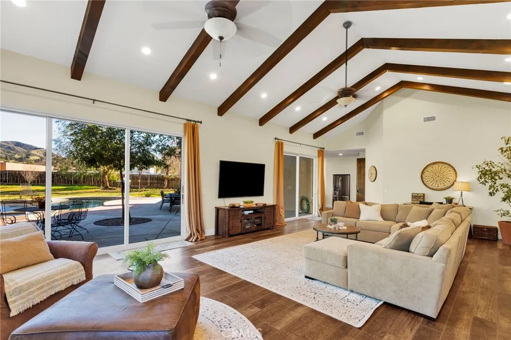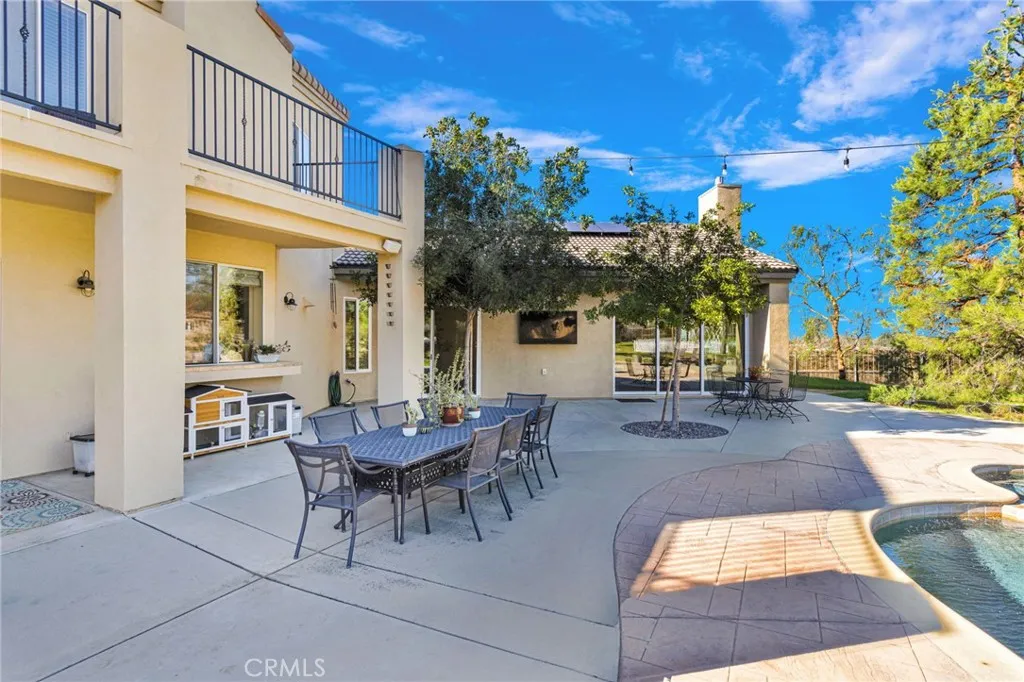 Meticulously maintained dream home with 3,647 feet featuring 5 bedrooms, 3 and 1/2 bathrooms, a dedicated office space all set on over an acre (1.08) of fully fenced and gated private and gorgeous surroundings. Awesome two story home with breathtaking mountain views from the beautifully landscaped back yard complete with sparkling pool, relaxing hot tub, fire pit, raised garden beds, fruit trees, fenced dog run and a storage barn and shed. The spacious open floor plan is filled with natural light and modern, stylish upgrades throughout, including a custom and massive walk-in pantry, an oversized living/great room, formal dining room, granite counters and newer stainless steel appliances. The second floor suite features a complete living room, private bedroom and full bath, bar with built-in refrigerator and is perfect for guests, or multigenerational living. Stunning view from the balcony of the entire yard, mountains and entertainment areas. The attached massive garage with appx. 1,600 feet provides ample room for hobbies, storage, a workshop and includes another built-in bar refrigerator and accesses the side yard. Home includes 3 A/C units, 2 tankless water heaters, a 30 amp service for your RV with great access, a removable fence for the pool, and too much more to list . Come experience country tranquility with every modern amenity a person could ask for. This is a true entertainer's paradise. 38 solar panels and dual Tesla batteries from Sunrun. See it before you lose your chance to experience this entertainers paradise. A flawless home and property!