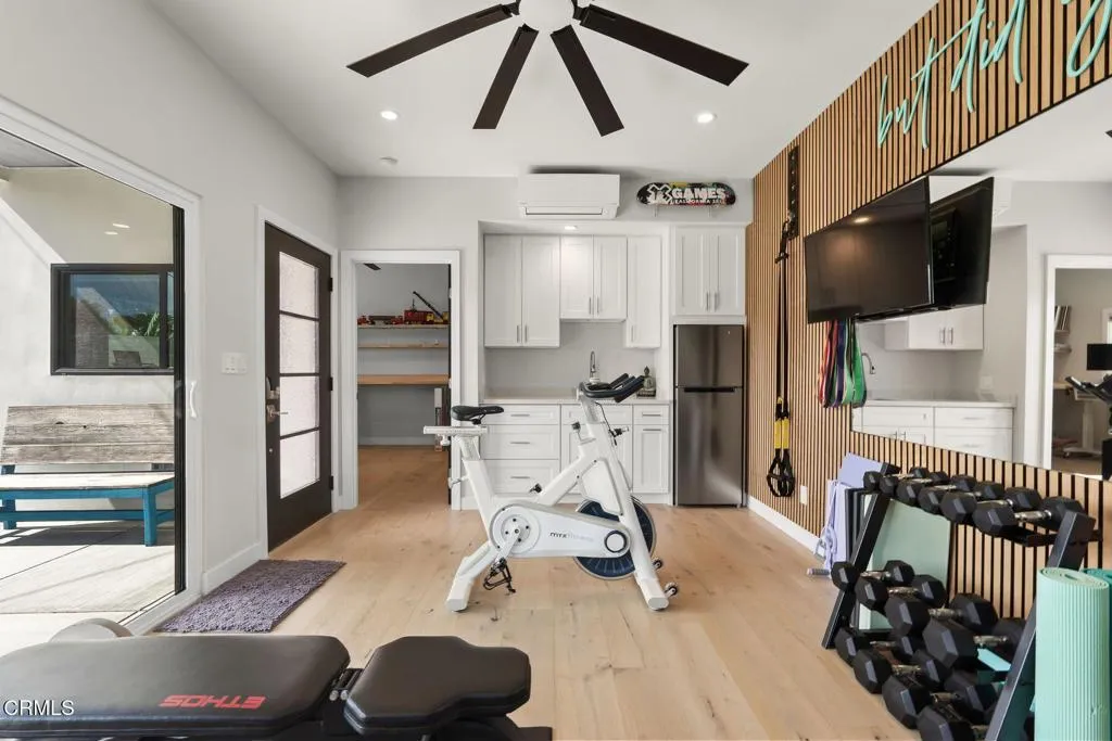 If you could capture the essence of Ventura living--sunshine, style, flexibility, and effortless indoor-outdoor flow--and wrap it into one home, this would be it. Nestled in the highly desirable Lower College neighborhood, this beautifully maintained property delivers comfort, versatility, and undeniable charm.Originally reimagined by the star of HGTV's Flip or Flop, this thoughtfully updated 1956 residence blends timeless character with modern design. The main home offers 3 bedrooms and 2 bathrooms, featuring an inviting indoor-outdoor floor plan ideal for both relaxed daily living and lively gatherings. Expansive windows bathe the interiors in natural light, while curated upgrades create a warm, welcoming atmosphere throughout. The kitchen provides generous storage and prep space and flows seamlessly into the dining and living areas, creating an open, connected feel. The attached two car garage upgrades include an epoxy floor, built ins, and can lights. Adding exceptional value is the recently built detached one-bedroom, one-bathroom gym/office unit complete with its own charming kitchenette. Whether used for guests, extended family, rental income, or a private office retreat, this separate living space offers flexibility and privacy without sacrificing cohesion.The backyard is designed for true California entertaining. Fire up the outdoor BBQ, gather around the cozy fire pit on cool coastal evenings, watch your favorite game on the outdoor tv, and enjoy a space that invites connection and celebration year-round. There's ample room to relax, dine al fresco, and create unf