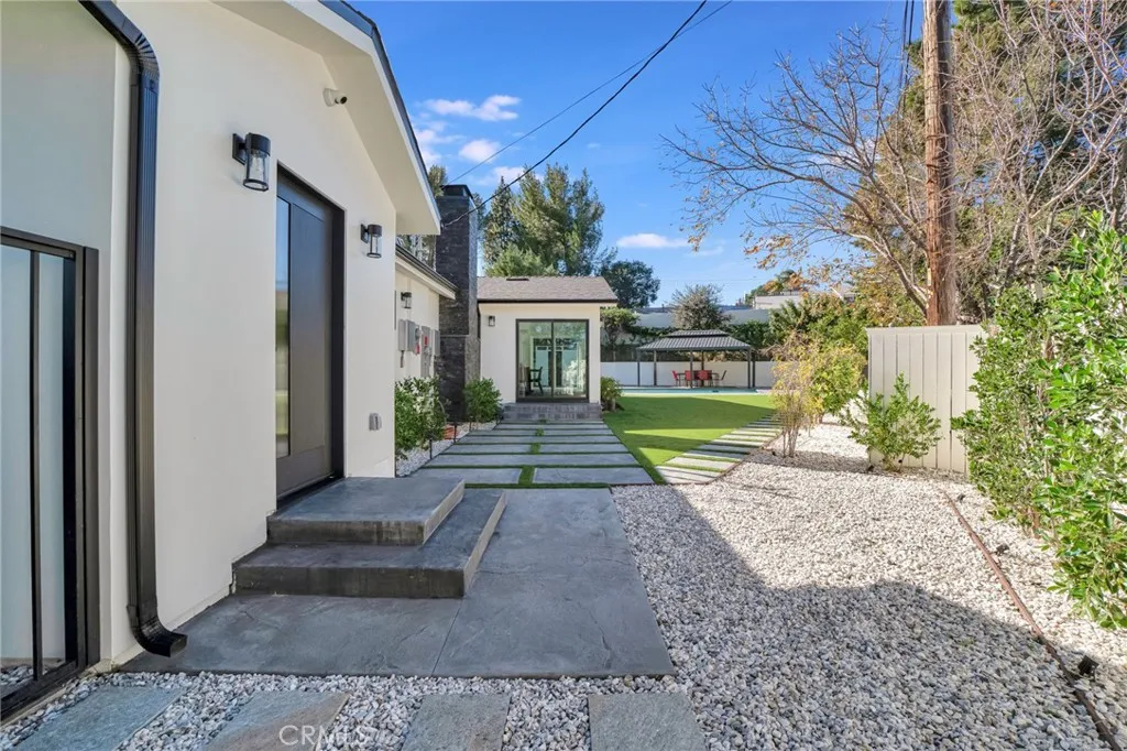 TWO NEW HOMES ON THE LOT !! Newly rebuilt modern compound with ADU, pool and Solar, located at 17165 & 17163 Midwood Drive in desirable Granada Hills, offering approximately 3,400 sq ft of combined living space with 6 bedrooms and 4 bathrooms, designed for luxury living, multi-generational flexibility, and income potential. This DUPLEX was completely reconstructed with permits between 20252026 from foundation to roof, this exceptional property delivers the feel of new construction with brand-new major systems, energy efficiency, and high-end designer finishes throughout. The main residence (approx. 2,600 sq ft with 4 bedrooms and 3 bathrooms) features a highly desirable open floor plan with spacious living and dining areas filled with natural light. A dramatic Calacatta marble fireplace wall creates a striking centerpiece in the living area. The chefs kitchen showcases a large Italian Calacatta marble island, matching marble countertops and backsplash, panel-ready Sub-Zero refrigerator, high-end appliances, custom cabinetry, and a walk-in pantry, making it ideal for both everyday living and entertaining. The primary suite retreat offers a sitting or office area, spacious walk-in closet, and a spa-inspired bathroom featuring a soaking tub and oversized walk-in shower finished in luxury porcelain. A dedicated laundry room with marble finishes, utility sink, smart LG washer and dryer, folding area, and storage cabinetry adds everyday convenience. The newly constructed ADU / Guest house (approx. 800 sq ft with 2 bedrooms and 1 bathroom) includes its own open living area, kitche