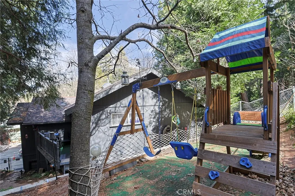 Tucked among the towering trees in the beautiful community of Crestline, this storybook 3 bedroom 2 bathroom mountain retreat blends timeless charm with modern style. The bright, open kitchen showcases navy blue cabinetry, quartz counter-tops, stainless steel appliances, and a spacious island thats perfect for gatherings and entertaining. The inviting open floor plan is filled with natural light, with abundant windows that bring the outdoors in and create a bright, airy atmosphere. Step out onto the upper deck and take in the tranquil treetop views the perfect setting for morning coffee, sunset unwinding, or peaceful mountain evenings under the stars. A private driveway and attached two-car garage add everyday convenience to this serene escape. Located just minutes from scenic trails, water activities, shopping, dining, and the community charm of Lake Gregory Regional Park, this home offers the perfect opportunity for a full-time residence, weekend getaway, or mountain investment.