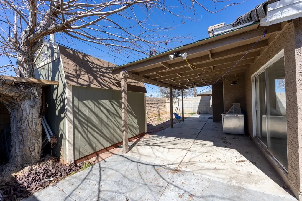 Charming 3-bedroom, 2-bathroom home with tile flooring throughout the main living areas, including the kitchen, dining room, and living room. The living room features a cozy fireplace and two sliding glass doors that open to a covered back patio, perfect for relaxing or entertaining guests. The backyard patio also includes a convenient storage area. The home offers three spacious bedrooms with laminated flooring. Ideal for first-time homebuyers or a growing family. Lockbox.