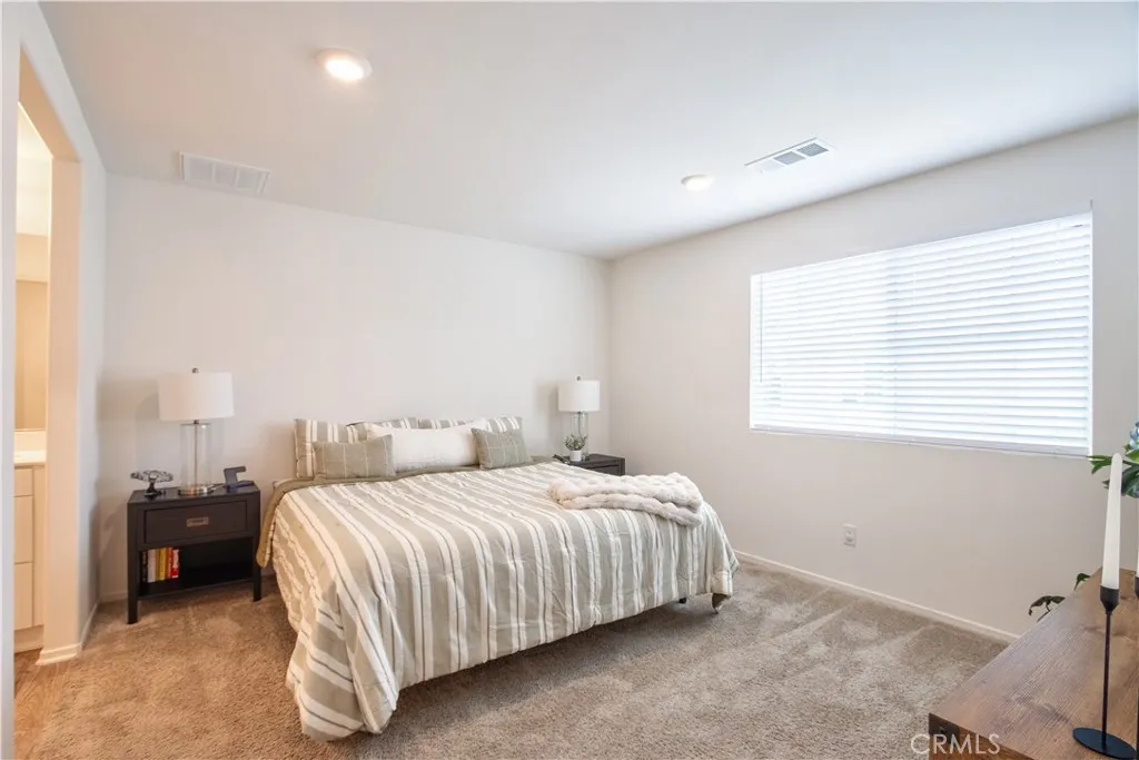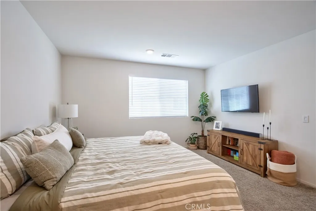 Welcome to this modern 2-bedroom, 2-bath condo offering 1,129 sq ft of living space, built in 2021 and located in the desirable Meadowlark Pointe community in Murrieta. Home Features All bedrooms upstairs with spacious layout Open-concept kitchen and living area perfect for entertaining Granite countertops and stainless steel appliances Shaker-style cabinets and modern finishes Custom paint throughout laminate wood flooring in living areas and carpet in bedrooms Spacious primary suite with en-suite bathroom and dual vanities Second bedroom ideal for guests, home office, or personal retreat Large covered balcony perfect for morning coffee or relaxing evenings Private two-car garage with additional storage space Energy-efficient solar lease panels with low monthly payments Tankless water heater for endless hot water Conveniently located minutes from restaurants, shopping centers, and everyday amenities. Close to the 215 Freeway, the new Costco shopping center, and Loma Linda Medical Center. Walking distance to schools, making this a great location for families. virtual tour https://tours.tvvirtualtours.com/idx/311722