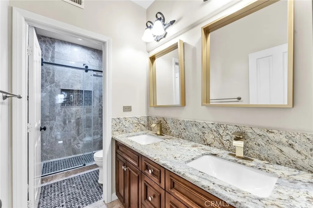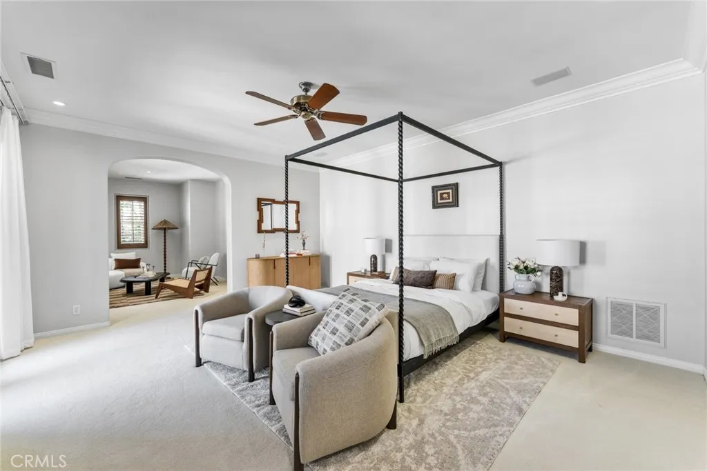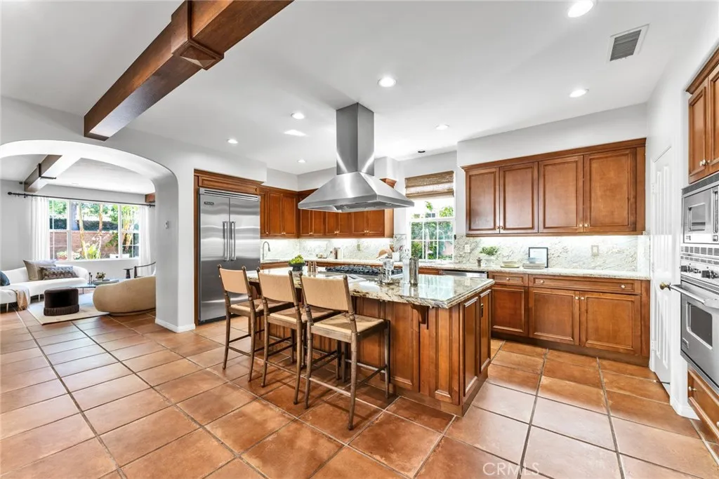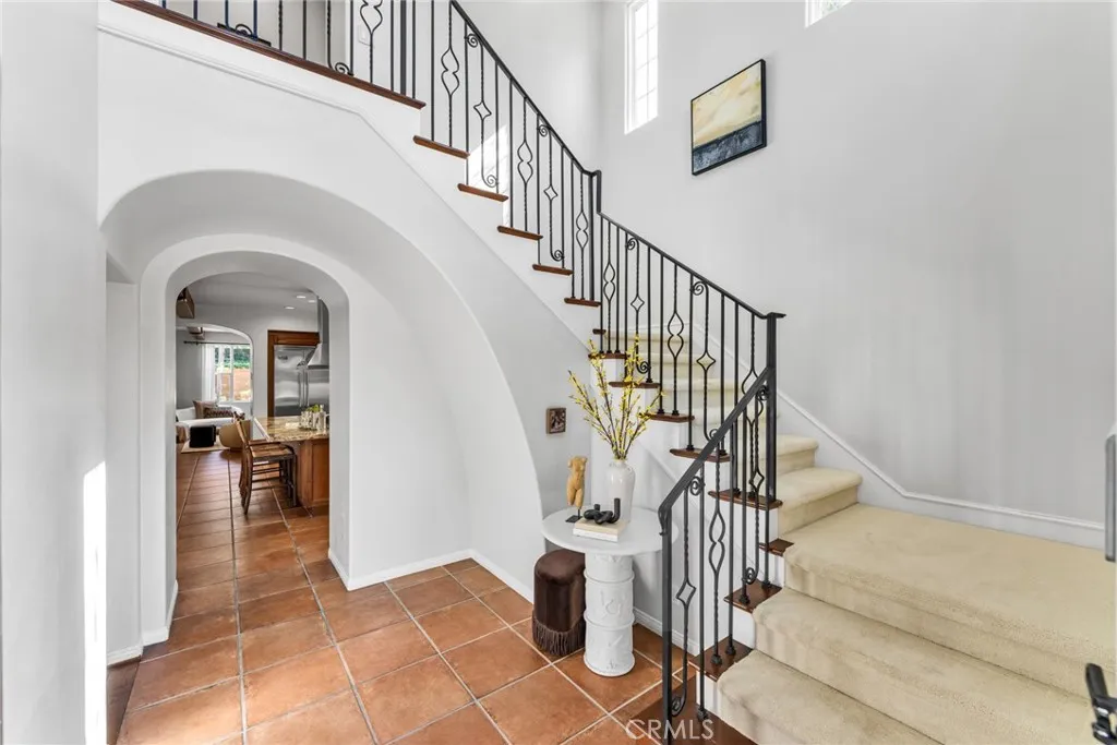 "This unique former Model Home (Plan IV by California Pacific) is located in the gated community of Northwood Park II. Situated in a prime location with a lush green belt behind the backyard, the home features a distinctive Porte-Cochere driveway. Inside, the grand entrance foyer boasts high ceilings, with a convenient downstairs bedroom located nearby. The gourmet kitchen is appointed with upgraded cabinetry, a large island, high-end granite countertops, dual sinks, a built-in refrigerator, a European-style range hood, and a pantry, all overlooking the formal dining area. The adjacent family room features built-in cabinetry, elegant wooden ceiling beams, and Spanish tile flooring for a sophisticated European feel. The master suite includes a private retreat and a luxurious bathroom with custom ceramic tile work on the shower and tub, plus a huge walk-in closet with built-in organizers. Two additional bedrooms share a beautifully remodeled bathroom. A highlights is the Casita over the garage with its own private rear staircasecurrently used as an office but easily convertible into a 5th bedroom. The backyard offers a built-in fountain, creating a serene and private escape. All this is within walking distance to the community pool, clubhouse, park, and BBQ area."