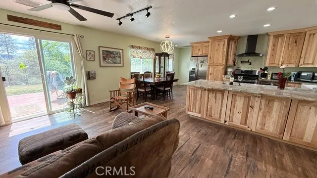Mountain Luxury Meets Modern Comfort! This stunning, 4-bedroom, 3-bath custom home was completely remodeled from the ground up in 2022. Designed with an open-concept lifestyle in mind, the 1,488 sq. ft. single-level floor plan features two primary suites one at each end of the home offering ideal privacy for extended family, guests, or a high-potential vacation rental. The heart of this family friendly home is a cozy great room where a custom kitchen, featuring luxurious hickory cabinets and granite countertops, flows seamlessly into the dining and living areas. Enjoy the warmth of the wood-burning stove or the efficiency of a brand-new HVAC system and whole-house fan. LED ceiling fans are in all rooms for additional comfort. Outdoor Living & Highlights: Pine, cedar and manzaita trees. Dual Views: The East suite opens to a vibrant rose garden with views of Goat Mountain, Shut Eye and the Sierra Mountains, while the West suite leads to a new redwood deck perfect for sunset watching. Entertainer's Dream: Four access doors lead to the expansive backyard and deck, complemented by a granite breakfast bar that seats five. Bonus Structures: Includes a 12'x22' powered workshop, a new 20' shipping container, and a 16' wood shed. The Lot: Over 1.1 acres on a quiet cul-de-sac with a circular driveway and deer-proof fencing to protect your lush landscaping. Located just 5 minutes from Bass Lake, 6 minutes from town, and 20 minutes from Yosemite's South Gate. At an elevation of 3,750', you'll experience the beauty of all four seasons, including snow! Most furnishings are included.