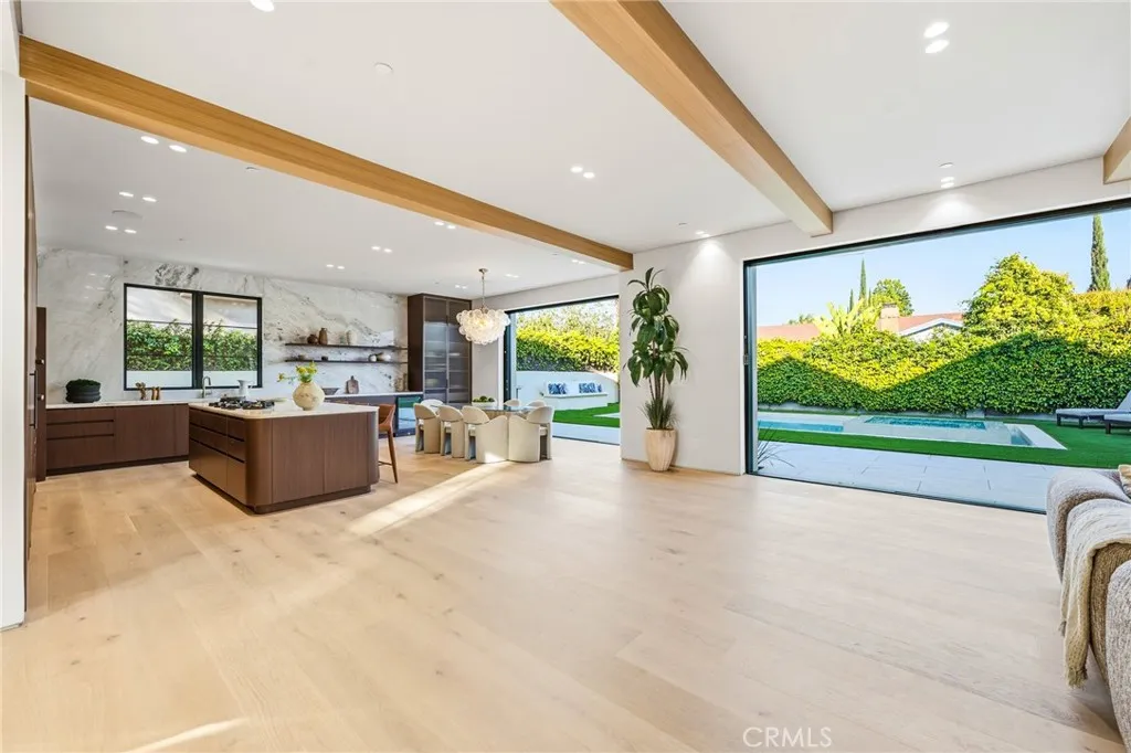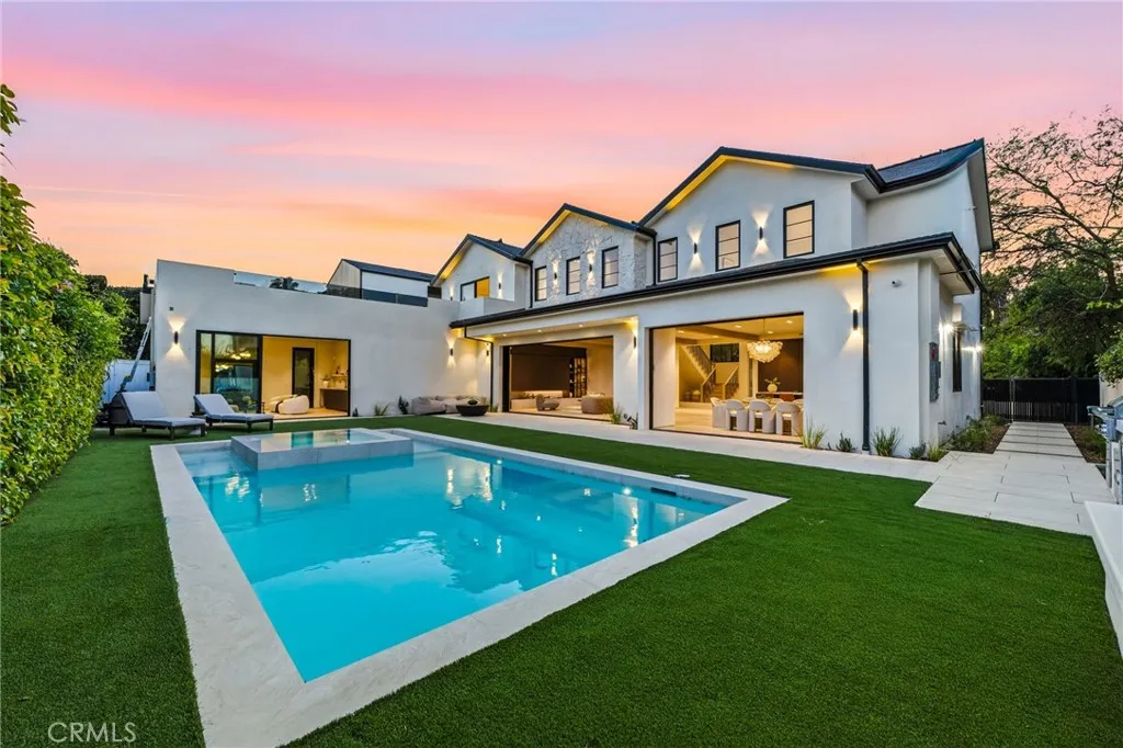 Welcome to a stunning newly constructed estate in the highly sought-after Hesby Oaks neighborhood of Encino, where modern luxury and thoughtful design come together to create the ultimate California lifestyle. This exceptional residence offers 6 spacious bedrooms plus a private movie theater, delivering an ideal layout for both everyday comfort and elevated entertaining. Upon entry, soaring ceilings, wide-plank hardwood floors, and expansive walls of glass greet you, flooding the home with natural light while creating seamless indoor-outdoor flow. The open-concept living spaces lead into a designer chefs kitchen featuring top-of-the-line appliances, custom cabinetry, an oversized center island, and a hidden walk-in pantry that adds both functionality and a sleek, refined aesthetic. Pocket sliding doors open effortlessly from the main living areas, creating a seamless transition to the backyard and enhancing the homes indoor-outdoor lifestyle. The thoughtfully designed floor plan includes generously sized bedrooms, and a luxurious primary suite retreat complete with a spa-inspired bathroom and an expansive walk-in closet. Step outside to an entertainers dream backyard, featuring a sparkling pool with an elevated spa, spacious lounging areas, and a fully equipped outdoor kitchen perfect for hosting and dining al fresco. Situated on a gated property along a quiet, tree-lined street in the coveted Hesby Oaks neighborhood, the home offers both privacy and tranquility while remaining just moments from Ventura Boulevards premier shopping, dining, and entertainment. A rare opportun