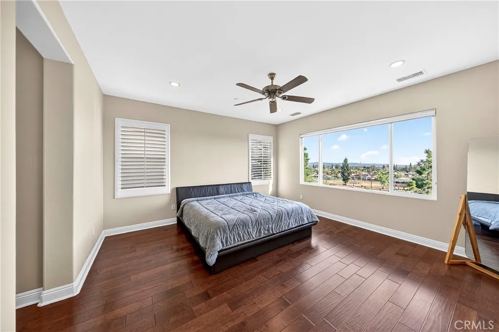 Welcome to this beautiful 3-bedroom + loft, 2.5-bathroom home in the highly desirable Blackstone Community. As you enter through the gated entry, youll notice the peaceful setting and lovely city views. On clear evenings, you can even enjoy distant views of the Disneyland fireworks. Inside, the home is bright and inviting with porcelain tile and hardwood floors and recessed lighting throughout. The living room features a cozy fireplace, built-in ceiling speakers, and large windows with scenic city views. It opens to the formal dining area and spacious kitchen. The kitchen offers granite countertops and backsplash, a center island, stainless steel appliances, and custom shelving. Upstairs includes a separate laundry room, a versatile loft, and spacious bedrooms with large closets. Bathrooms feature dual sinks with granite countertops. The primary suite offers hardwood floors, two walk-in closets, and beautiful city views. The primary bathroom includes a walk-in shower with frameless glass door, a soaking tub, and granite countertops. The backyard features brick and stone walkways and multiple sliding glass doors, creating a great indoor-outdoor space for relaxing or entertaining while enjoying the city lights and distant Disneyland fireworks. Conveniently located near freeways, shopping, dining, and top-rated schools. A must-see home!