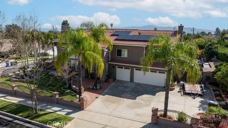 Northern Upland Home with $56K+ in Upgrades! Recent improvements include $5K in pool updates, $12K exterior paint, $12K professional landscaping with low-maintenance succulents, $13K water softener system, new stair carpeting, interior shutters, privacy mesh, and a safely enclosed pool area. Solar system in place ($221/mo). 4,137 sqft with 6 beds, 5 baths (including downstairs bedroom), open floor plan with formal living/dining, family room, and granite kitchen with pool views. Primary suite with private balcony and mountain views. Corner cul-de-sac lot with 3-car garage, backyard pool/spa, mature fruit trees, RV gate, and convenient 210 freeway access. Square footage not verified. Buyer to satisfy themselves.