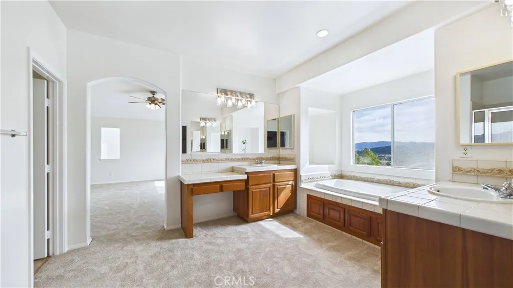 Nestled atop the desirable Northlake community, just moments away from Castaic Lake,this home has it all! Stepping inside you'll find a contemporary floor plan boasting soaring ceilings and ample natural light, freshly updated with fresh paintand brand new carpet throughout. The first floor, adorned with beautiful hardwood flooring,features spacious family, living, and dining rooms, as well as a downstairs bedroom and bathroom, complete with step-in shower. The second floor plays host to five more bedrooms, including the enormous primary suite complete with huge walk in closet, a spacious study, and access to a balcony that affords sweeping views. Stepping out back, you will find a sparkling, modern pool and spa. Completing this stunning home's list of amenities is a three car garage (one two car bay and one single car bay) and phenomenal energy savings thanks to *owned* solar!
