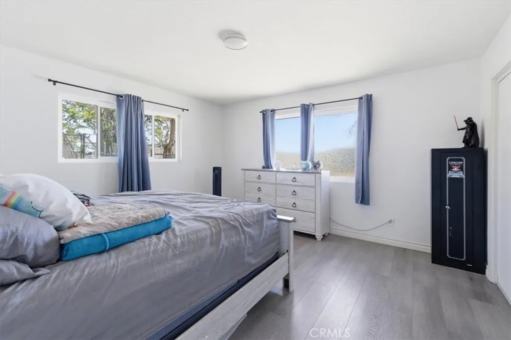 Welcome to this beautifully upgraded 3-bedroom, 2-bath home situated on an expansive lot in the heart of Yucca Valley. energy-efficient double-pane windows, and stylish laminated flooring throughout. The modern kitchen is designed to impress with updated cabinetry, sleek quartz countertops, and newer appliances including a range and microwave, while both bathrooms have been tastefully renovated with tile showers, updated vanities, and contemporary finishes. Comfort meets functionality with generously sized bedrooms, ample closet space, and a newly installed AC unit to keep you cool year-round. The attached two-car garage offers abundant storage along with a built-in workbench, perfect for hobbies or additional workspace. A gated entry opens to a spacious driveway, providing plenty of parking for guests, RVs, or recreational vehicles. Set on a large, fully fenced lot with mature trees, this property offers privacy and room to enjoy the outdoors with covered patio. Backyard provides spacious room for an ADU. Buyer is to verify ADU information with the city. Conveniently located near local shopping, dining, and schools, and just a short drive to the natural beauty of Joshua Tree National Park, this home is ideal as a primary residence, vacation getaway, or investment opportunity.