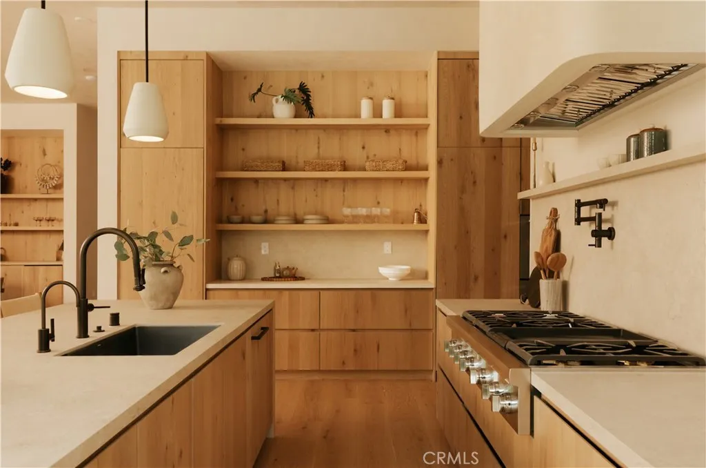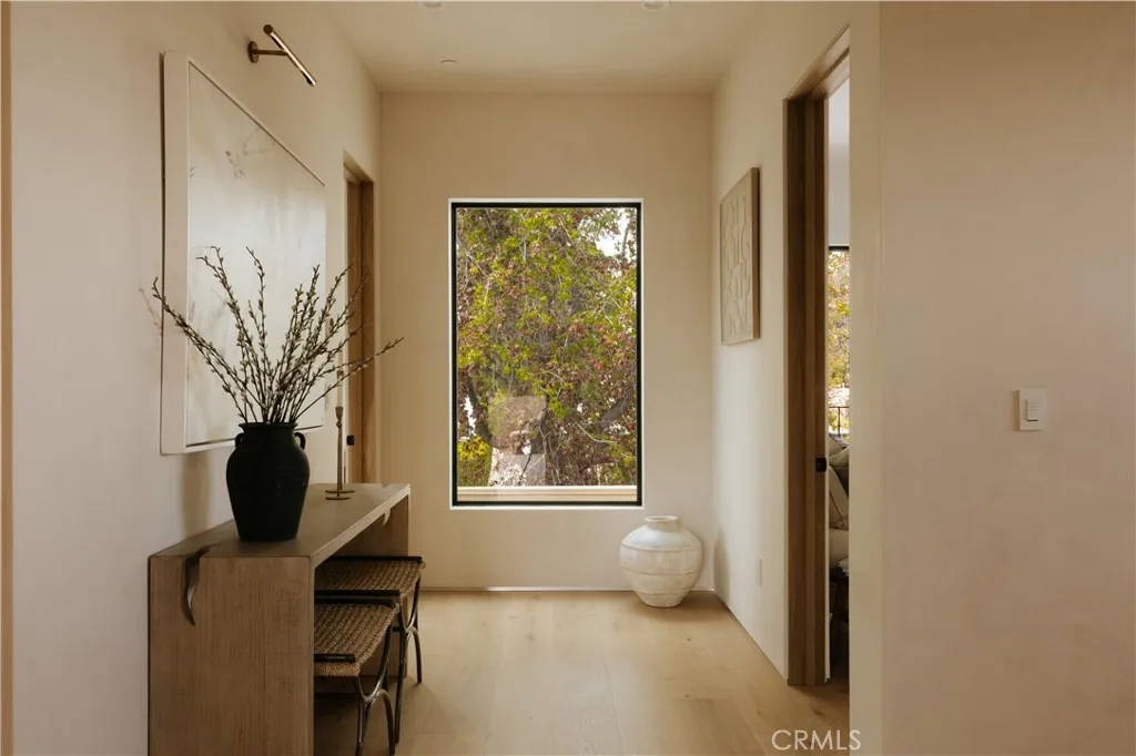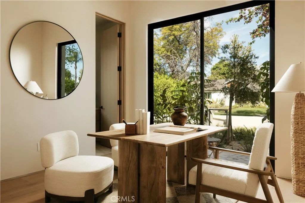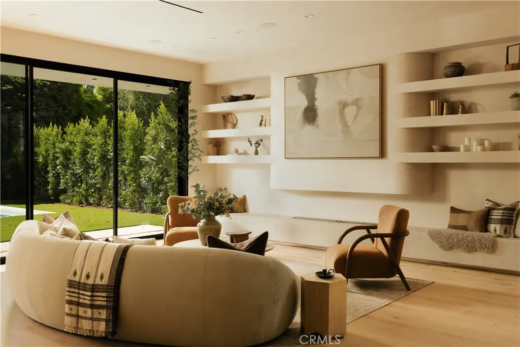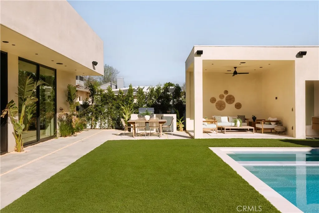 Tucked behind a clean, modern faade, this newly constructed residence unfolds as a warm, organic retreat where natural textures, soft tones, and effortless indoor-outdoor living take center stage. Spanning approximately 4,000 square feet on a 7,000 square foot lot, this 4-bedroom, 5.5-bathroom home blends thoughtful design with everyday functionality. Built and designed by Thynk Development, the home showcases a refined approach to modern organic living. Inside, soaring ceilings and lime-wash walls create a calm, elevated atmosphere, complemented by natural wood finishes and curated materials throughout. The open-concept living space flows seamlessly into a chefs kitchen featuring natural stone countertops, custom cabinetry, premium Thermador appliances, and a separate butlers kitchendesigned for both intimate living and elevated entertaining. The layout offers one en-suite bedroom on the main level, ideal for guests or a private office, while upstairs features three en-suite bedrooms including a stunning primary suite with a private balcony and spa-inspired bath, delivering a true resort-like experience. Large sliding glass doors open to a lush backyard oasis complete with a pool, expansive lawn, and detached cabanaperfect for dining, lounging, and hosting in a serene, private setting. Modern convenience meets luxury with a fully integrated Control4 smart home system, alarm and security system, built-in sound system, and a massive solar panel system for enhanced efficiency and sustainability. A rare offering that blends modern organic design, refined finishes, advanced tec