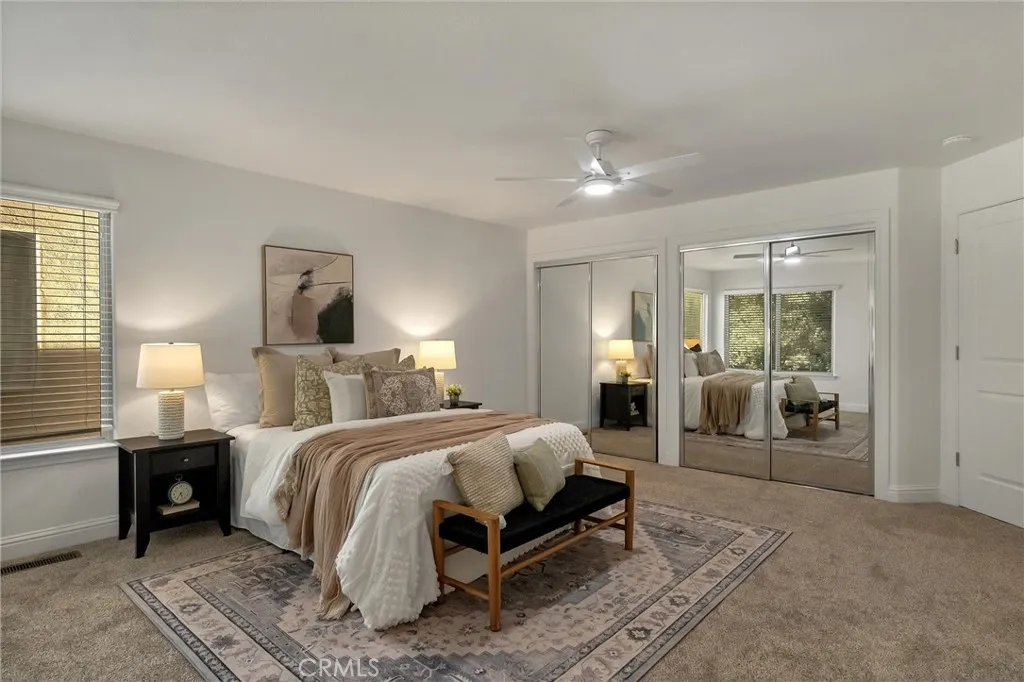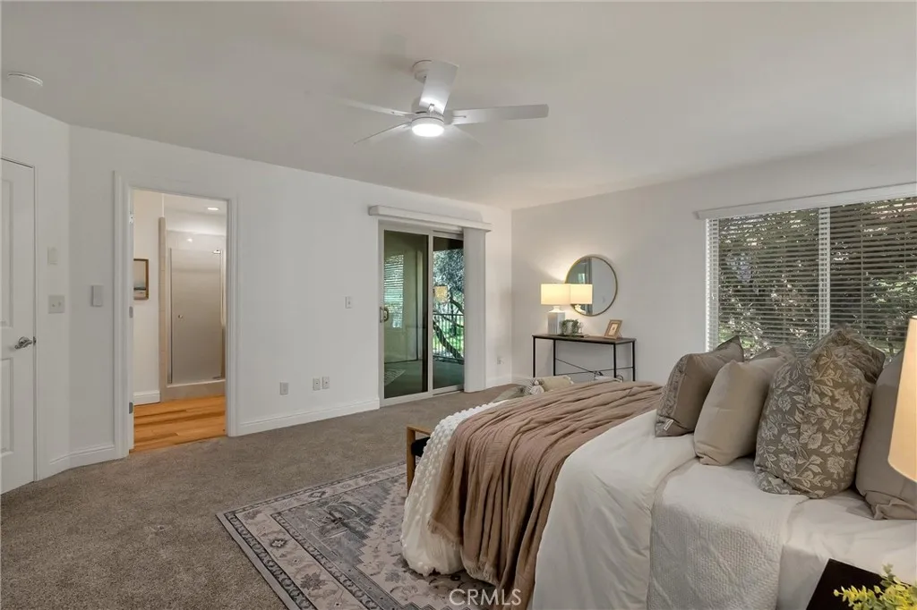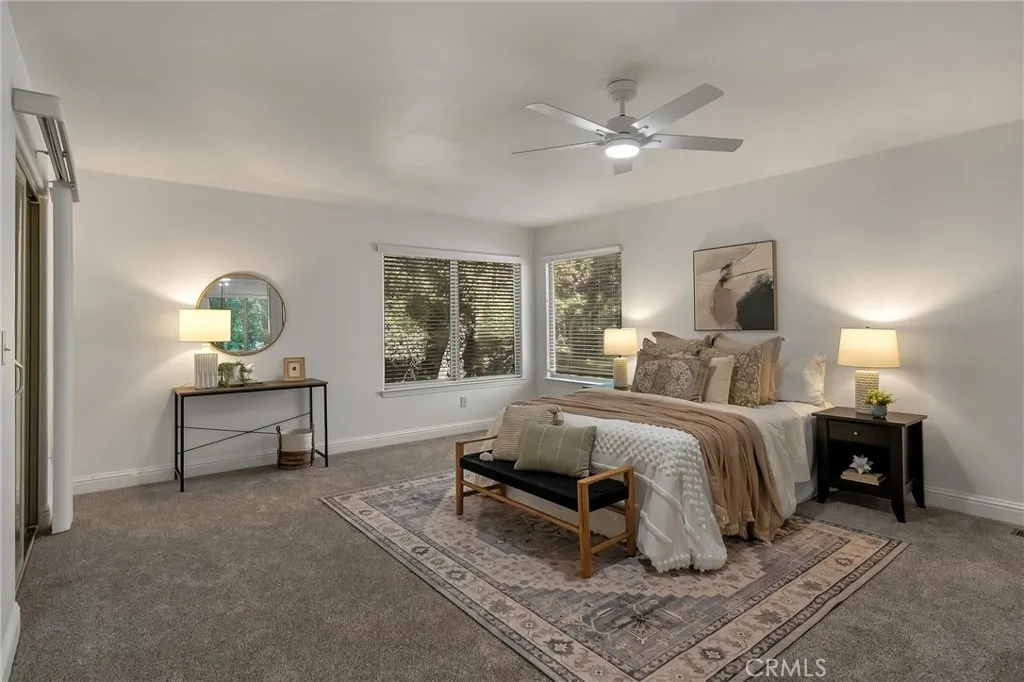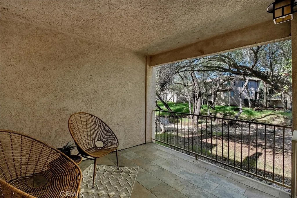 Welcome to your peaceful retreat in the highly desirable Canyon Oaks Country Club community! Tucked away on a quiet cul-de-sac, this adorable and move-in ready home offers privacy and serenity with no neighbors across the street and a beautiful natural backdrop of trees, a seasonal creek, and tranquil surroundings. Step inside to a bright, clean, and welcoming main level designed for comfortable living. The spacious kitchen opens seamlessly to the family room and features a peninsula island with bar-top seating, perfect for casual dining or entertaining. Just off the dining area, a sliding glass door leads to the first balcony where you can relax and enjoy the peaceful nature views. The family room offers a cozy fireplace and more picturesque views of the surrounding greenery. Also on the main floor is a versatile bedroom that would make a wonderful home office, along with a full bathroom, laundry room, and convenient access to the 2-car garage. The lower level continues to impress with an incredibly spacious layout. Youll find an additional storage area that could easily be used for crafts, hobbies, or extra organization. The large guest bedroom features a walk-in closet and sits next to a full guest bathroom. At the end of the hall is the expansive primary suite, complete with an en-suite bathroom and its own private balcony overlooking the peaceful natural setting. Recent updates and features include newer fixtures, carpet, interior paint, dishwasher, patio tile, hardwood flooring, and a whole house vacuum system. This charming home offers the perfect blend of comfort, n