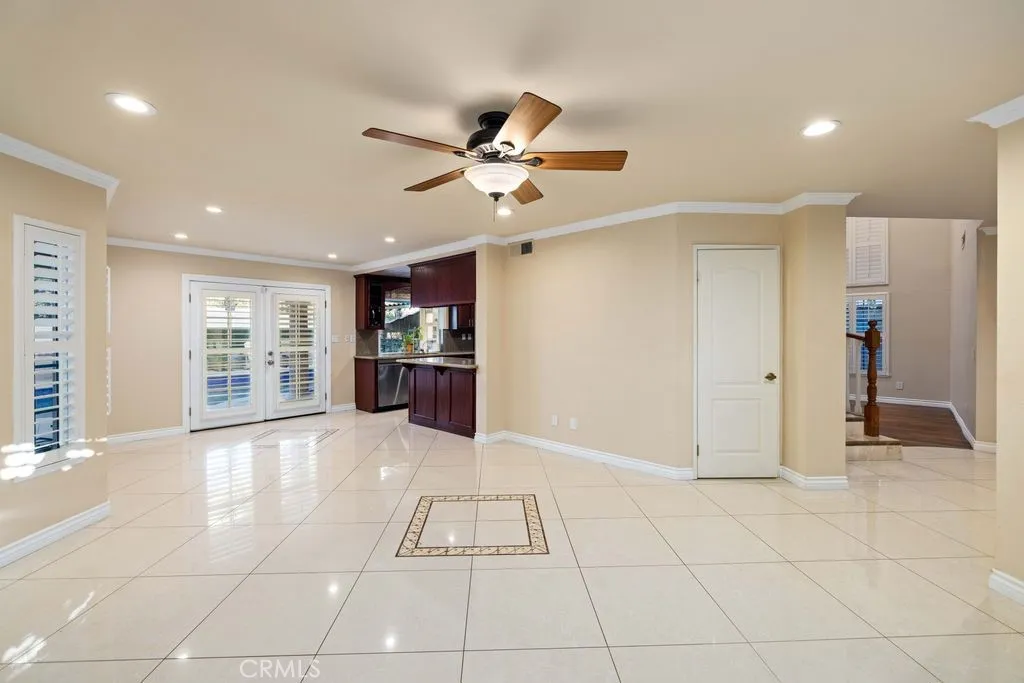 Welcome to this beautifully maintained two-story pool home in the highly desirable Bravo tract of Castaics scenic hillside community. Showcasing pride of ownership throughout, this residence offers an ideal blend of comfort and functionality. Attractive curb appeal opens to a light-filled interior featuring soaring ceilings, a dramatic spiral staircase, and a formal living room with clerestory windows. Custom hardwood flooring enhances the open floor plan. The formal dining room features French doors to the backyard, while the upgraded kitchen offers ceramic tile flooring, abundant cabinetry, granite countertops with high backsplash, breakfast bar, newer stainless steel gas range and microwave, and a large bay window overlooking the pool. A casual dining area with additional French doors creates seamless indoor-outdoor flow. The family room includes a custom fireplace, built-in entertainment centers, and storage beneath the staircase. A guest powder room completes the main level. Upstairs, the spacious primary suite features two closets, a large retreat with walk-in closet (builder option for a fourth bedroom), and sliding doors to a private balcony with mountain and the stunning backyard views. The updated ensuite includes a dual-sink vanity, oversized jetted soaking tub with shower, private water closet, and custom organizers. Two additional bedrooms and an updated bathroom complete the second floor. The backyard is a private oasis with a covered patio featuring recessed lighting and ceiling fan, concrete hardscape, sparkling Pebble Tec pool and spa with upgrades, and a c
