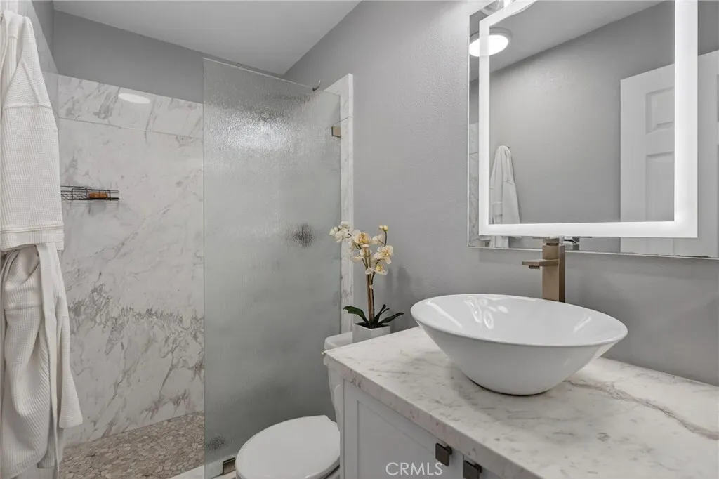 Prime South Corona - Fully Updated Luxury Home! NO HOA/ Low Taxes and ***PAID OFF SOLAR *** This exceptional residence presents over 3,300 square feet of updated living space, situated on a generous and beautifully utilized lot. Fully renovated and well maintained, the home offers a move-inready experience with refined upgrades at every turn. From the moment you arrive, the propertys unique sense of luxury becomes clear. A stunning built-in, 10-person heated waterfall spa enhances the front exterior, creating an inviting retreat perfect for both relaxing evenings and memorable gatherings. The expansive floor plan includes open kitchen and gathering space, Formal living and dining room areas, custom stone facade, climate controlled 200 bottle wine cellar discreetly located under the staircase, four spacious bedrooms plus a downstairs office and versatile loft, offering flexibility for work, leisure, or additional living space. Only $4,800 to convert the loft to a bedroom. The three-and-a-half elegantly renovated bathrooms feature marble vanities and beautifully finished marble shower walls, creating a spa-like atmosphere. Showcasing sophisticated craftsmanship throughoutfeaturing custom cabinetry, premium real wood flooring, and contemporary designer lighting. A state-of-the-art THX Ultra sound system with several house audio zones seamlessly enhances the lower-level living spaces as well as the primary suite, adding modern convenience and ambiance ideal for entertainment and relaxation. The chef-inspired kitchen is a true centerpiece, boasting a large marble island, extensi