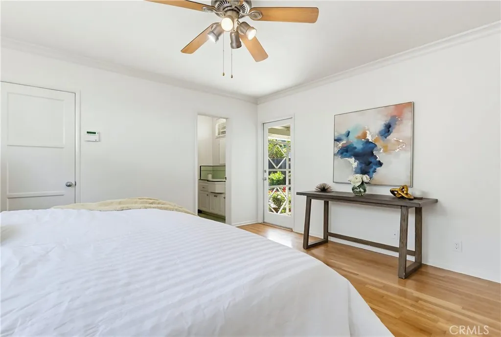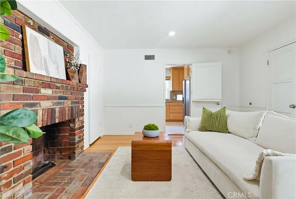 This beautifully maintained and thoughtfully preserved Mellenthin home captures the perfect blend of timeless character and modern comfort. Rich in original detail, the home showcases pristine vintage bathrooms, a stunning dual fireplace, and a dramatic living room with vaulted wood-beamed ceilings that create warmth and architectural interest. The signature Mellenthin glass block accents in the kitchen add a touch of iconic mid-century charm. A formal dining area provides the perfect setting for gatherings, while a spacious den offers flexibility and can easily be converted into a fourth bedroom. Tasteful upgrades complement the homes authenticity, including custom-built solid maple kitchen cabinetry, granite countertops, and stainless steel appliances. Gorgeous refinished original hardwood floors run throughout, enhancing the homes cohesive and inviting feel. Step outside to a private backyard offering ample space to entertain under the covered patio or create your dream outdoor retreatcomplete with room to add a pool. Additional highlights include dual-pane windows and a gated setting for added privacy and peace of mind. This is a rare opportunity to own a true Mellenthin gemwhere classic design, quality craftsmanship, and modern updates come together in one of Sherman Oaks most desirable neighborhoods.