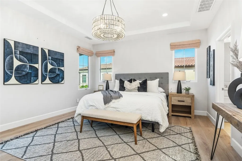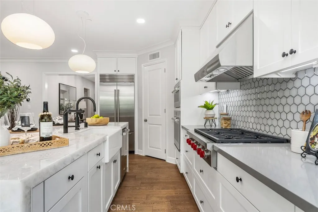 Luxury Live Auction! Bidding to start from $1,500,000! Redefining modern elegance, this four-bedroom residence offers a turnkey sanctuary in one of Irvines most prestigious communities. Situated on a rare greenbelt-facing lot, the home delivers a sophisticated, timeless feel with serene views of lush greenery and rolling orchards. At the heart of the home is a beautifully renovated chefs kitchen, featuring an illuminated waterfall island, mirrored backsplash, and a premium suite of appliances including a Wolf six-burner range, Cove dishwasher, and brand-new Sub-Zero refrigerator. Every detail has been thoughtfully curated, from wide-plank hardwood flooring throughout, to soft close drawers, and motorized shades. With a desirable main-level bedroom, a spacious second-level primary retreat complete with a soaking tub, abundant natural light in every room, the home seamlessly blends refined design with a premier location just moments from resort-style amenities and award-winning schools.