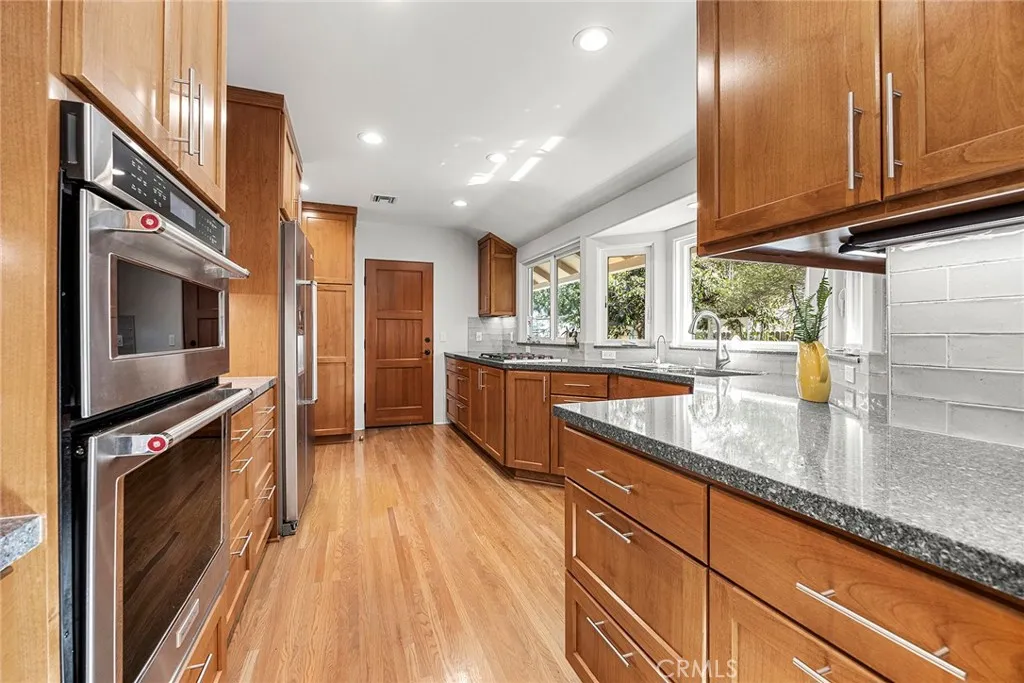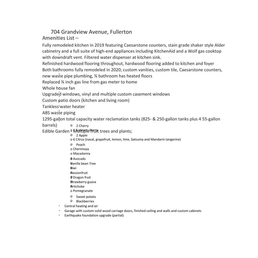 Nestled within a veritable arboretum of fruit bearing trees, drought tolerant plantings and a stunning California cypress pine tree, sits a beautifully crafted and upgraded residence. Built in 1940 by local home builders, the Jewett Brothers, 704 Grandview Avenue is a seamless blend of understated pre-war architectural details and high quality and thoughtful upgrades. Stunning hardwood flooring is found in the entry foyer and throughout the home, setting the stage for a pristine and understated interior. The well-proportioned living room features an art-deco inspired tray ceiling detail, stately brick fireplace and upgraded custom casement windows. A solid glass pane patio door leads to the back porch and on to the backyard. Corner windows and custom wainscotting are highlights of the dining room that flows seamlessly on to the stunning, functional and spacious kitchen. Fully remodeled by a general contractor in 2019, the kitchen hosts striking Caesarstone counters, stain grade shaker style Alder cabinetry and a full suite of high end appliances including KitchenAid and a Wolf gas cooktop with downdraft vent. The charming kitchen sink is set within a unique bay window alcove overlooking the backyard. French doors lead to the backyard and convenient direct garage access is found in the kitchen. Welcoming and spacious bedrooms all feature original closets with built-ins and hardwood flooring. Both bathrooms have been fully and thoughtfully remodeled down to the studs, with new flooring, vanities, plumbing and fixtures. Custom tile finishes are found in the bathtub surround in