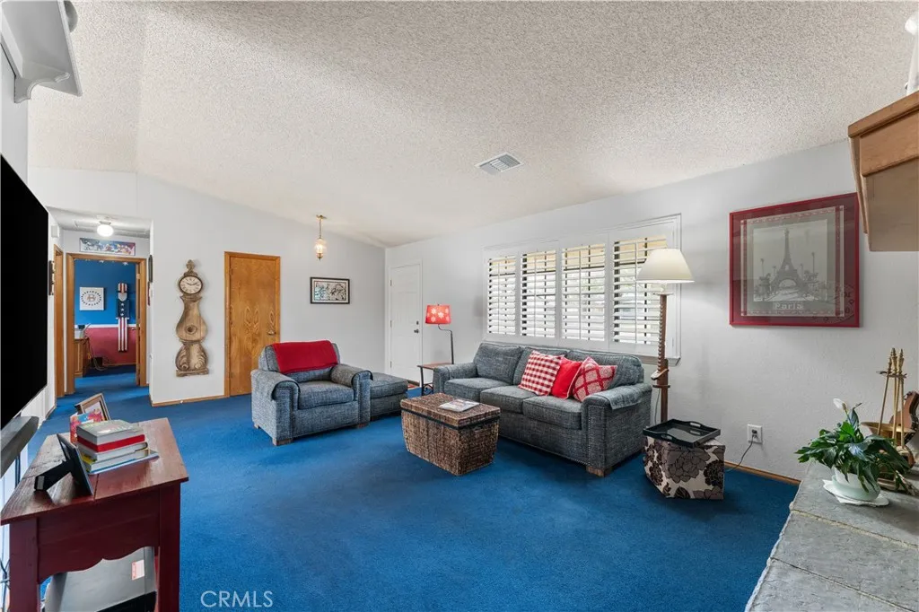 This beautifully maintained ranch style home offers 3 bedrooms, 2 full baths and 1,320 square feet of living space. Large family room with a vaulted ceiling, plantation shutters and a cozy fireplace with a decorative rock hearth. The kitchen has a breakfast bar and a dining area with a sliding glass door to the backyard. UPGRADED HVAC unit for improved energy efficiency! The primary retreat is spacious with it's own private bath. BONUS ROOM perfect for an office, exercise room or easily convert into a 4th bedroom! Backyard OASIS with mature landscaping, large grass area, covered patio, RV access, TWO large storage sheds and plenty of extra space for whatever your heart desires! This is truly a MUST SEE home!