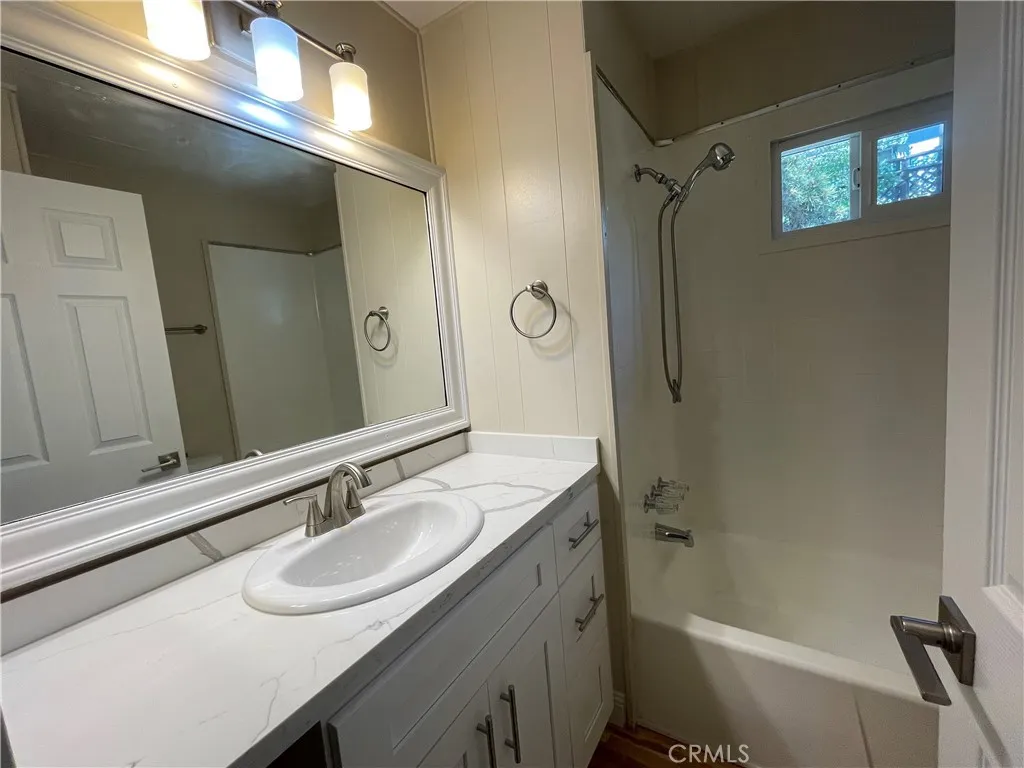 Brand New Upgrades Throughout!!! Discover this spectacular newly remodeled mountain-view home in Oak Crest Estates, a highly sought-after co-op land-owned 55+ community. Featuring 2 bedrooms and 2 bathrooms, this inviting home welcomes you with a large freshly resealed front porch, perfect for enjoying cool breezes, peaceful scenery, unforgettable sunsets, and exceptional privacy with no neighbors directly in front and minimal neighboring homes on each side. (NEW CLOSET/HALLWAY DOORS ARE YET TO BE INSTALLED) Step inside through the new Milgard front sliding door to a bright spacious living room with new large picture dual-paned windows showcasing breathtaking panoramic views. New waterproof vinyl flooring over upgraded plywood subflooring flows into the dining area, complete with a new ceiling fan and built-in glass display cabinet. The adjacent kitchen has been beautifully updated with new shaker-style white cabinetry, including a lazy Susan, quartz countertops, new hardware, subway tile backsplash, stainless steel stove, refrigerator, built-in microwave, and garbage disposal. Additional upgrades include new plumbing fixtures, drains, water lines, angle stops, and upgraded electrical with Decora outlets, switches, and GFI protection. Both bathrooms feature updated cabinetry, new plumbing fixtures, medicine cabinets, vanity lighting, and new toilets. Interior improvements continue with new baseboards, fresh paint, six-panel interior doors, updated hardware, ceiling lights, and floor vents. The home also offers an indoor laundry area with a newer washer and dryer beside the