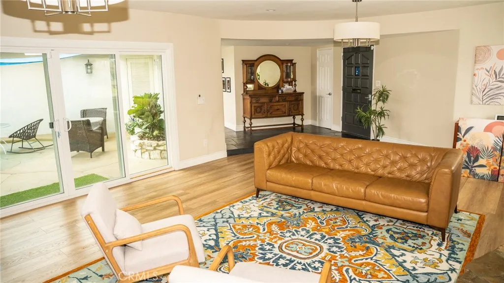 Welcome to 9837 Belfair Street, a fully renovated home in one of Bellflower's most desirable areas. This stunning 3 bedroom, 2 1/2 bath home offers resort style living with a sparkling pool, sophisticated upgrades throughout and premium material that rival new construction. Every detail has been thoughtfully curated. As you step inside you will find soaring ceilings, black slate entry, luxury vinyl plank flooring and Benjamin Moore designer paint tones. The gourmet kitchen is a showstopper, completely rebuilt with custom cabinetry, porcelain tile, high end counter tops and premium appliances perfect for the modern chef. All 3 bedrooms have been remodeled with pscale fixtures, sleek finishes. The homes open floor plan seamlessly blends comfort and elegance with an abundance of natural light and new mini-split HVAC system for efficient climate control. The backyard is a private oasis, complete with a pristine swimming pool, perfect for entertaining or relaxing year round. u Additional highlights: New plumbing, electrical, mini-splits. Don't miss this opportunity to own a fully upgraded home in a high valued neighborhood. This home is move in ready with no expenses have been spared.