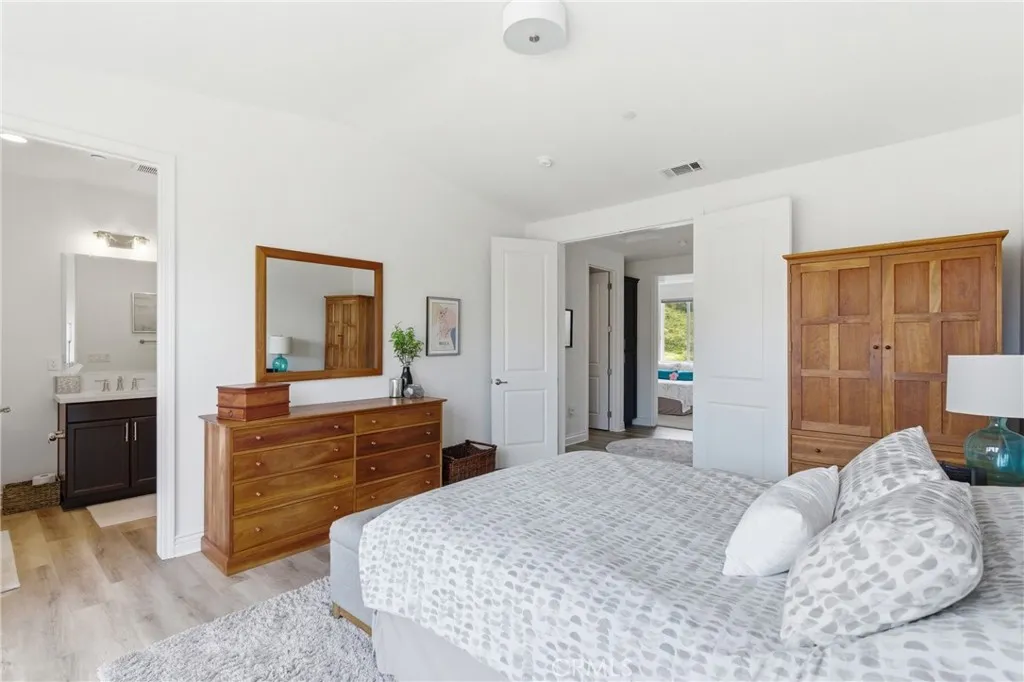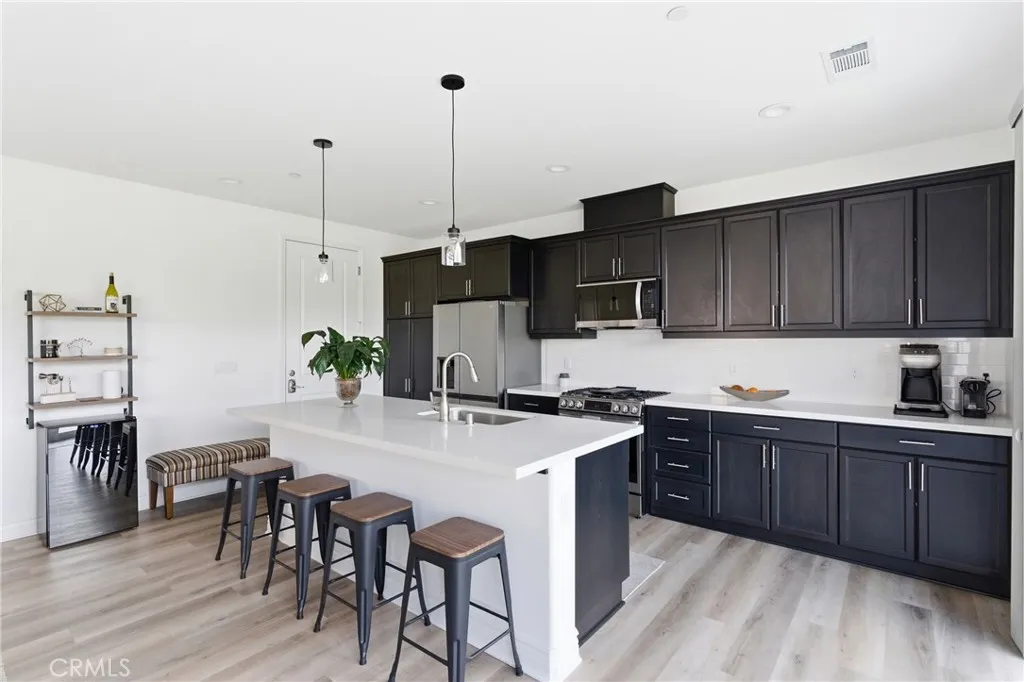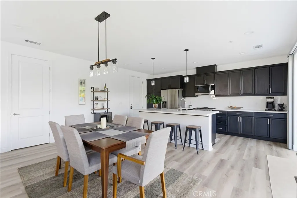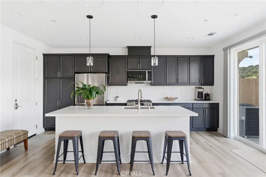 Enjoy this beautifully constructed 4 bedroom, 4 bath home in the highly sought-after Rice Ranch community. Built in 2024, this home features owned solar, high ceilings, air conditioning, and abundant natural light. The open floor plan includes a living room, dining area, and a kitchen equipped with quartz countertops, LG appliances, breakfast bar seating, and ample cabinetry. Luxury vinyl plank flooring runs throughout the main living areas and the primary bedroom, while carpeting is featured in the other bedrooms. A downstairs bedroom with an en suite bath provides flexibility for single level living, guests or multi-generational living. Upstairs, a loft offers space for an office, media room, or play area, along with a laundry room. The primary suite features dual sinks, a large shower, and a walk-in closet. Two additional bedrooms and a full bathroom complete the upper level. Additional features are tankless water heater and custom Hunter Douglas window treatments throughout. The low-maintenance backyard includes grass and a concrete patio, suitable for outdoor use and enjoying views of the surrounding hills. Residents have access to the Rice Ranch Summit Club with pool, spa, fitness center, pickleball courts, and clubhouse. This move-in ready home is located near parks, trails, and more! Information not verified.
