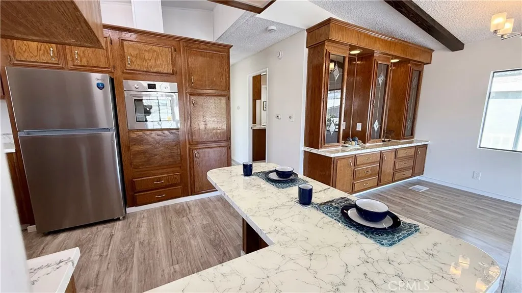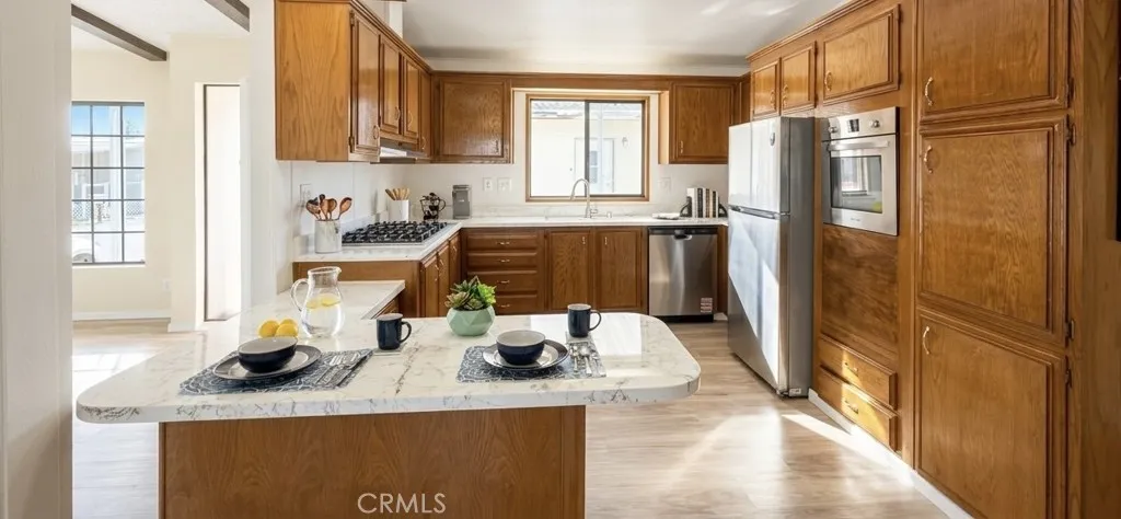 Welcome to this beautifully updated 1984 manufactured home located in the desirable 55+ community of Juniper Terrace in Hemet. Offering 1,440 sq. ft. of comfortable living space, this home has been thoughtfully upgraded and is move-in ready. Enjoy a modern touch with new stainless steel appliances, brand-new laminate flooring throughout, and freshly reglazed countertops, shower stall, bathtub, and vanity surfacesgiving the home a clean, refreshed feel. Additional improvements include a new hot water heater and an upgraded AC condenser with freon, providing comfort and efficiency year-round. Residents of Juniper Terrace benefit from a welcoming community atmosphere with access to a clubhouse, pool, and social amenities, perfect for an active and connected lifestyleall at an affordable price. More pictures coming soon. Dont miss this opportunity to own a well-maintained and upgraded home in a peaceful and friendly neighborhood.