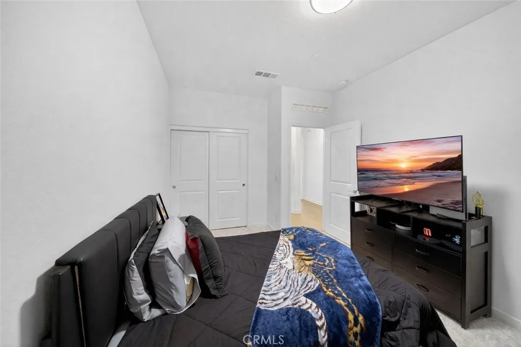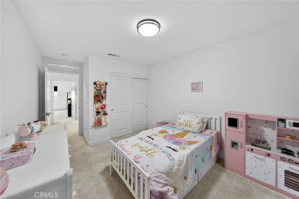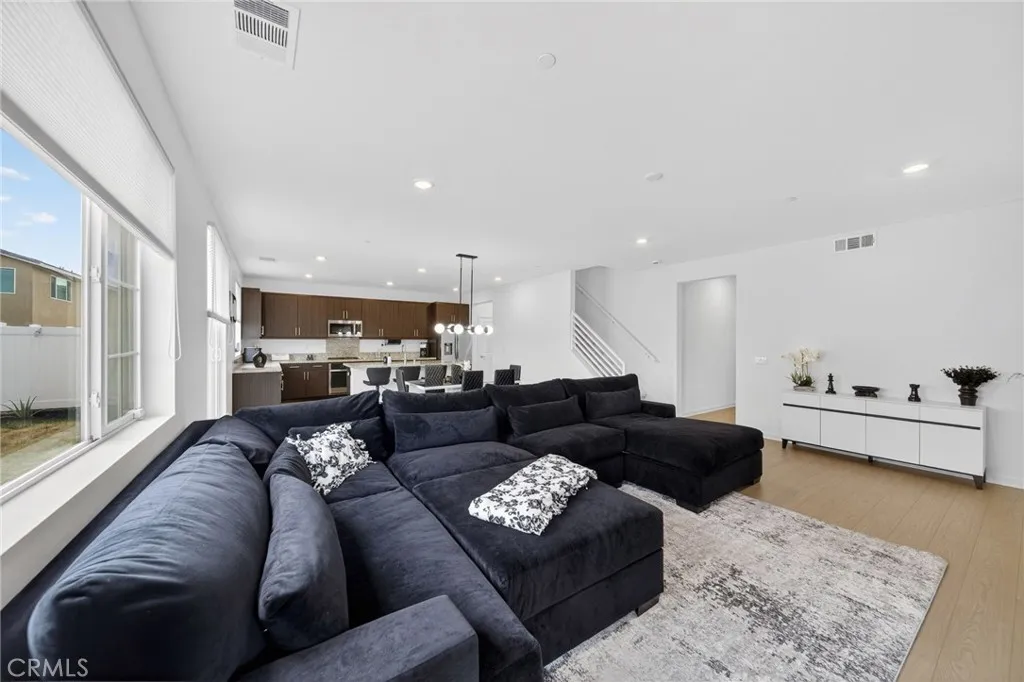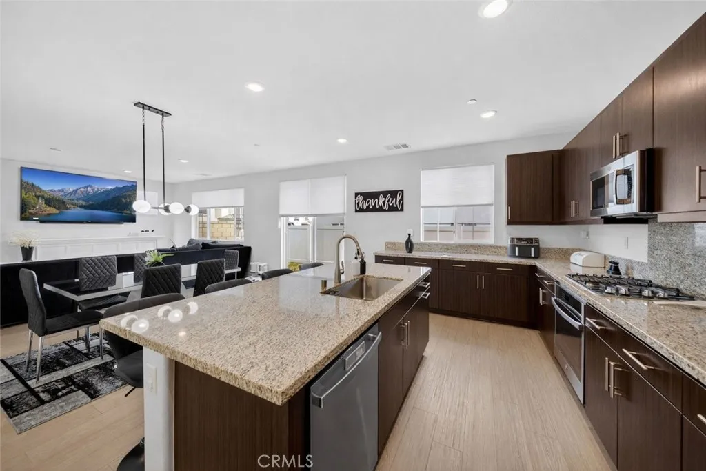 Welcome to 587 Holston Streetan exceptional opportunity to own a nearly new home in the highly sought-after River Ranch community of Rialto. Built in 2024 and offered for resale for the very first time, this home presents the rare chance to enjoy modern construction, thoughtful design, and move-in ready convenience without the wait. Positioned on a desirable corner lot, the property offers enhanced privacy with no immediate neighbor on one side, along with scenic mountain views that create a peaceful backdrop to everyday living. From the moment you arrive, the clean architectural lines and inviting curb appeal set the tone for whats inside. Step through the front door into a spacious, light-filled interior where an open-concept layout seamlessly connects the kitchen, dining, and living areas, designed for both effortless entertaining and comfortable daily living. The kitchen serves as the heart of the home, featuring a large center island, abundant cabinetry, and modern finishes that blend style and functionality. A highly desirable main-level bedroom and full bathroom provide flexibility for guests, multi-generational living, or a private home office. Upstairs, a versatile bonus room offers additional living space perfect for a media room, playroom, or workspace, while generously sized secondary bedrooms provide comfort for family and guests alike. The primary suite is thoughtfully designed as a private retreat, offering ample space, natural light, and a well-appointed en-suite bathroom with dual sinks and a spacious layout. Outside, the backyard is ready for your personal