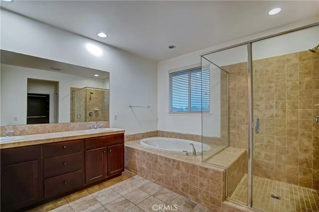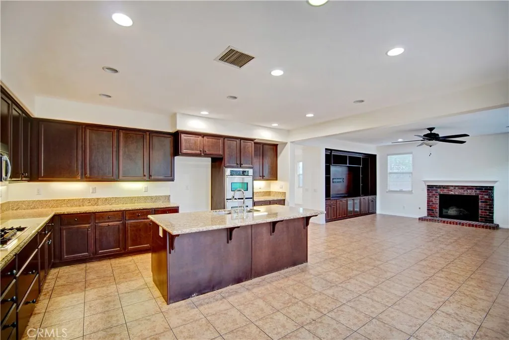 This is the home you feel right the moment you step inside. Beautifully refreshed 5-bedroom, 3.5 bath home, located at the north east corner of Old peak ln and Ryan lane. offers plenty of space, light, flexibility, and comfort in one of the most convenient and family-friendly neighborhoods in Corona/Eastvale. Freshly upgraded with brand new interior and exterior paint with pleasing travertine stone flooring, this move-in ready home blends warmth and modern style throughout. From the moment you enter, youre greeted by soaring ceilings, abundant natural light, recessed lighting that create a bright and inviting atmosphere. The thoughtfully designed open concept floor plan features a spacious great room with a cozy fireplace, custom made entertainment center, flowing seamlessly into an oversized kitchen complete with a large center island, granite countertops, stainless steel appliances, and extensive cabinet storage. The spacious family room is perfect for entertaining, hosting gatherings, or everyday family living. Downstairs offers a highly desirable bedroom and full bathroom, ideal for guests, multi-generational living, or a private home office. Upstairs, the expansive primary suite feels like a retreat, featuring large windows, a walk-in closet with custom made cabinets with plenty of storage, dual vanities, soaking tub, and separate glass-enclosed shower. Three additional generously sized bedrooms share a full bath, plus a large upstairs loft / secondary living room that can easily be enclosed as a 6th bedroom, office, gym, or media room the flexibility is yours. Enjoy