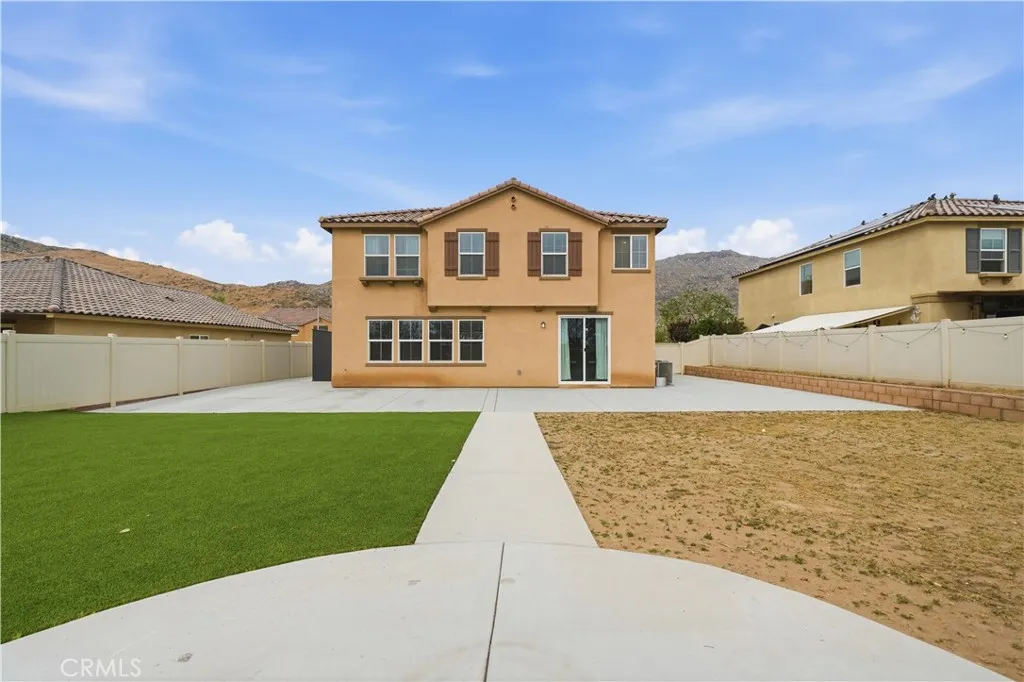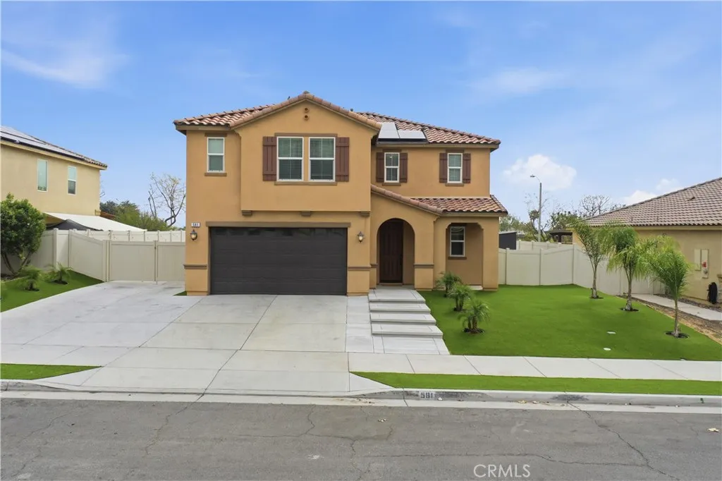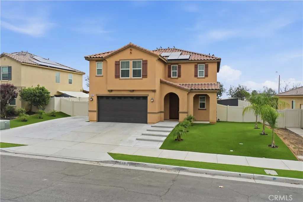 You can buy this home or rent this home for $3,300.00 per month. No lease to own. Just a regular 12-month lease at a time. Welcome to the highly desirable Cove Community in San Jacinto where comfort, efficiency, and modern upgrades come together in one exceptional home. This beautifully maintained 4-bedroom, 2.5-bath residence offers an open floor plan designed for both everyday living and entertaining. Step inside to find upgraded flooring, recessed lighting, and a spacious layout that flows seamlessly from the living area into a well-appointed kitchen featuring granite countertops and stainless-steel appliances. One of the standout features is the downstairs bedroom and bathroom, providing added convenience for guests, multi-generational living, or a private office setup. Upstairs, youll find generously sized bedrooms, including a primary suite with a super large walk-in closet. Situated on an expansive nearly 9,000 sqft lot, the backyard is truly a rare find. With artificial turf throughout, youll enjoy a clean, low-maintenance outdoor space year-round. The pool-sized lot offers endless possibilities for customization, while hardwired low-voltage landscape lighting creates an inviting ambiance in the evenings. RV parking and an extended driveway provide ample space for vehicles, toys, and guests. This home is also equipped with a solar lease that is incredibly affordable and designed to fully offset utility costs bringing long-term energy savings. For added convenience, a 240V Tesla Level 2 charger is already installed. With its thoughtful upgrades, oversized lot, and pr