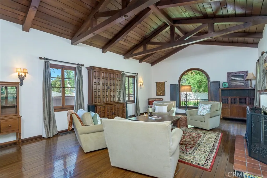 BUYERS FLAKED BEFORE ESCROW WAS EVEN OPENED ! NOTHING TO DO WITH THIS IMPECCABLE PROPERTY. Spanish Revival Architecture is having a major moment and this home showcases all of the signature design elements that make this style so popular, features like arched doorways and a large picture window, dark wood ceiling beams, wood-framed French windows, wrought-iron railings and fixtures, a handsome fireplace and hearth trimmed in Spanish tiles, intricate carved wood detailing at the mantle and decorative lintels, and a delightful little niche in the hallway. From the moment you enter through the wrought iron gate, you're welcomed by a large, vibrant courtyard designed for entertaining or relaxing beside the peaceful fountain and outdoor fireplace. This blend of classic architecture from the 1920s has all of today's modern conveniences and luxury as well. The well-designed kitchen is outfitted with top-tier Wolf appliances, a Shaws handcrafted sink and custom Wood Mode easy-clean cabinets. (You'll have to look closely to find the seamlessly integrated refrigerator and dishwasher.) The charming breakfast nook with its built-in seating is perfect for morning coffee or a cozy casual dining area. This nook also offers a wall of cabinets and a lighted, glass display case. The adjacent laundry room provides additional cabinet space. One thing is for sure: you won't lack for cabinet space here! Polished peg and groove wood floors in the living room and formal dining room add to the richness and beauty of this home. Climb the wood staircase with its wrought-iron railing and experience th