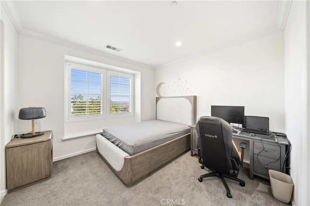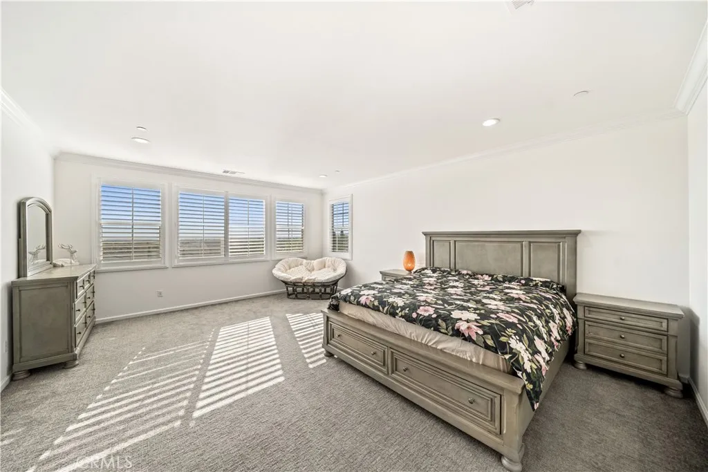 Located in the highly sought-after Rosedale community of Azusa, this beautifully upgraded home is situated on an oversized premium corner lot of approximately 8,968 square feet, with only one adjacent neighbor, offering exceptional privacy, extra outdoor space, and a bright, open setting. A south-facing side yard brings in abundant natural light throughout the home. Featuring approximately 3,447 square feet of living space, this residence offers 4 bedrooms, 3.5 bathrooms, a dedicated office/den that can easily be converted into a downstairs 5th bedroom, and a spacious upstairs loft with potential to become a 6th bedroom. The main level includes a private office, powder room, and a junior suite with dual vanities and a walk-in closet, ideal for guests or multi-generational living. The open-concept Great Room seamlessly connects the living, dining, and kitchen areas, creating an inviting space for both everyday living and entertaining. The gourmet kitchen is appointed with a large granite island and a walk-in pantry. Sliding doors open to a covered California Room with BBQ area, perfect for indoor-outdoor living. Upstairs, youll find a generous loft, two secondary bedrooms connected by a Jack-and-Jill bathroom, and a spacious primary suite featuring scenic city views, dual walk-in closets, and an upgraded bathroom. Additional highlights include paid solar with battery storage and a water softener system. Residents enjoy resort-style Rosedale amenities including parks, a clubhouse, gym, pool, spa, and scenic walking trails. Conveniently located near Costco, Target, the Metro G