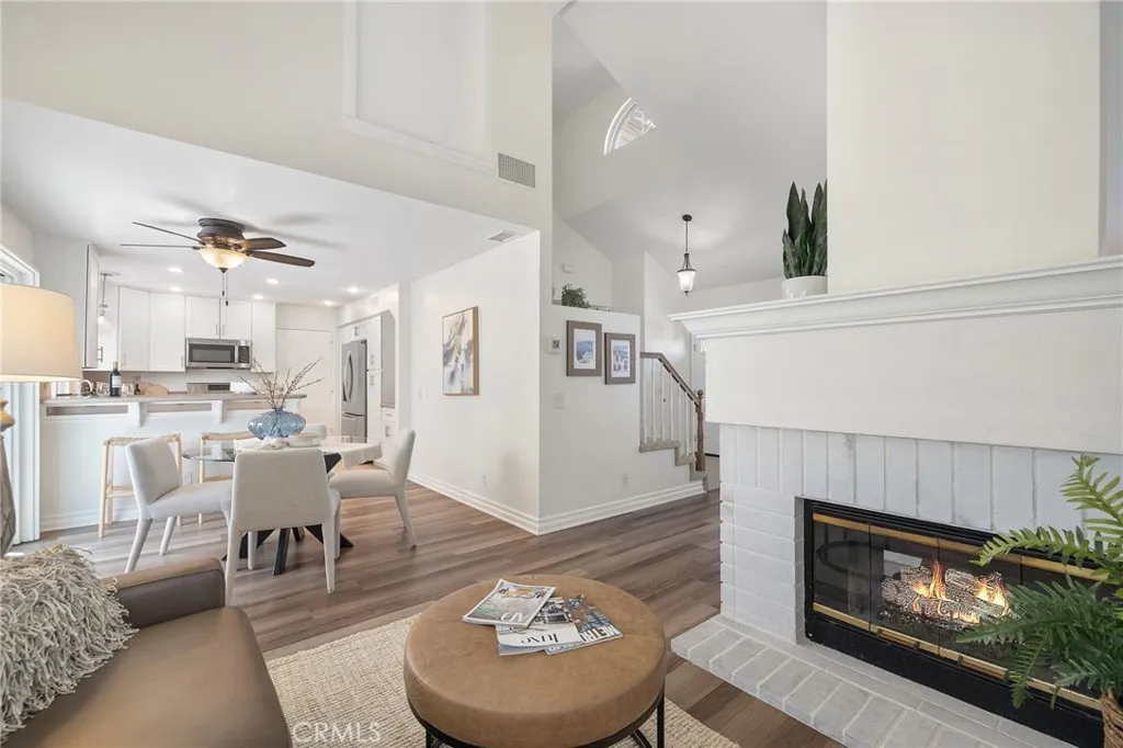 Beautiful 4 bedroom 3 bath home in the desirable Laguna Audubon community, located within the highly sought after Laguna Beach School District. Thoughtful floor plan features 3 bedrooms upstairs and 1 BEDROOM DOWNSTAIRS. Enjoy a cozy double sided fireplace connecting the living room and family room with wood vinyl flooring throughout the main living areas. The open concept kitchen offers white shaker cabinetry, granite countertops and flows seamlessly into the family room. Other notable features include full house repipe with PEX, new double fiberglass doors, LVP flooring and new tile in the entry, kitchen and downstairs bedroom and bath. Ideally situated near Laguna Beach, scenic hiking and biking trails, top rated schools, shopping, and convenient freeway access.