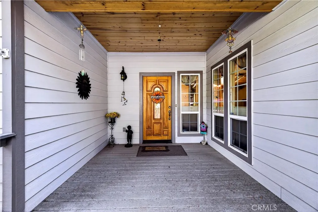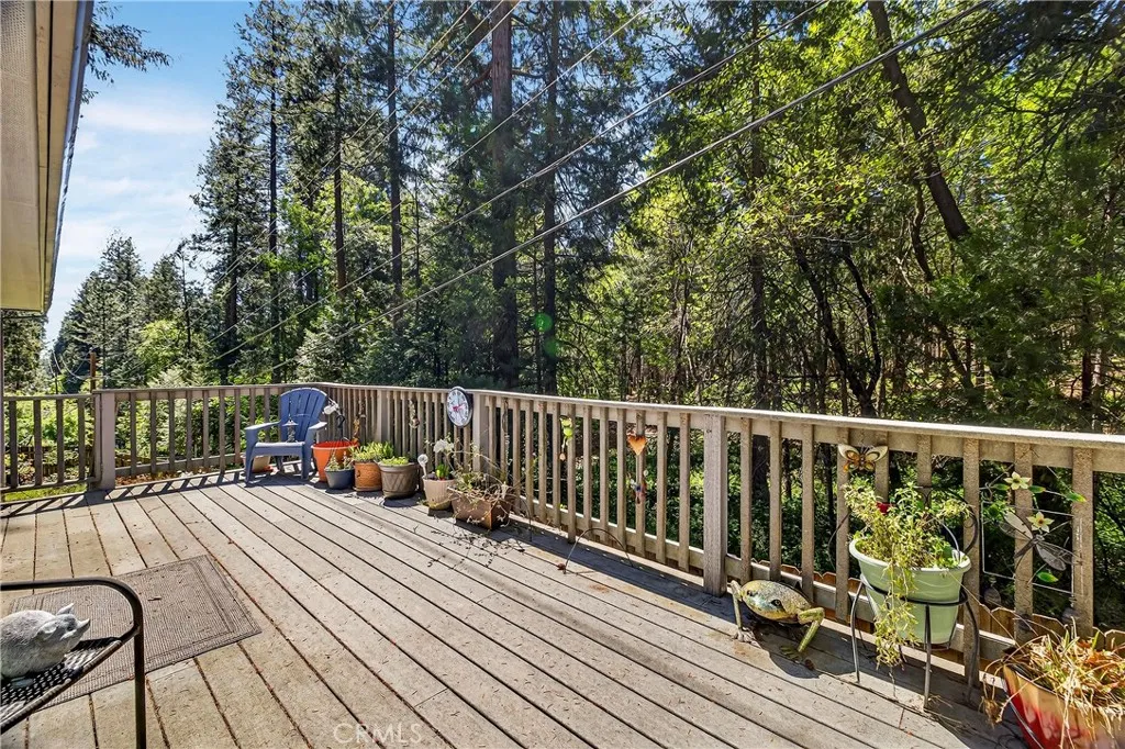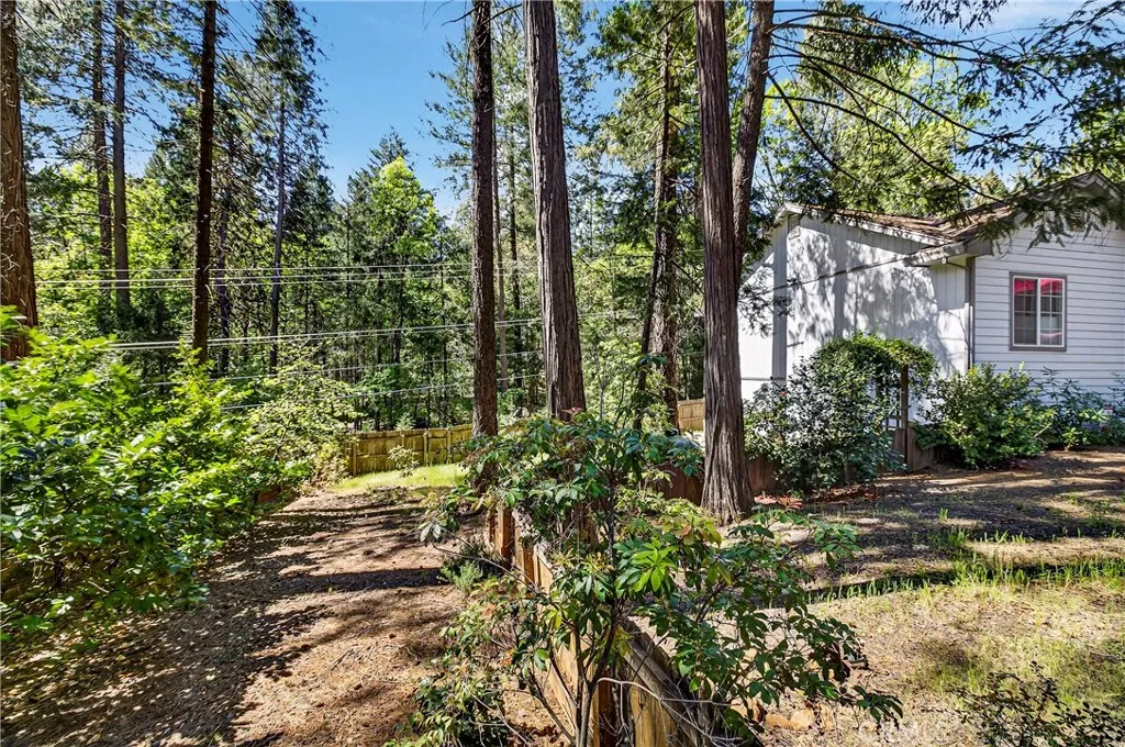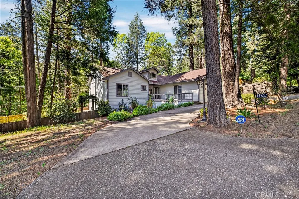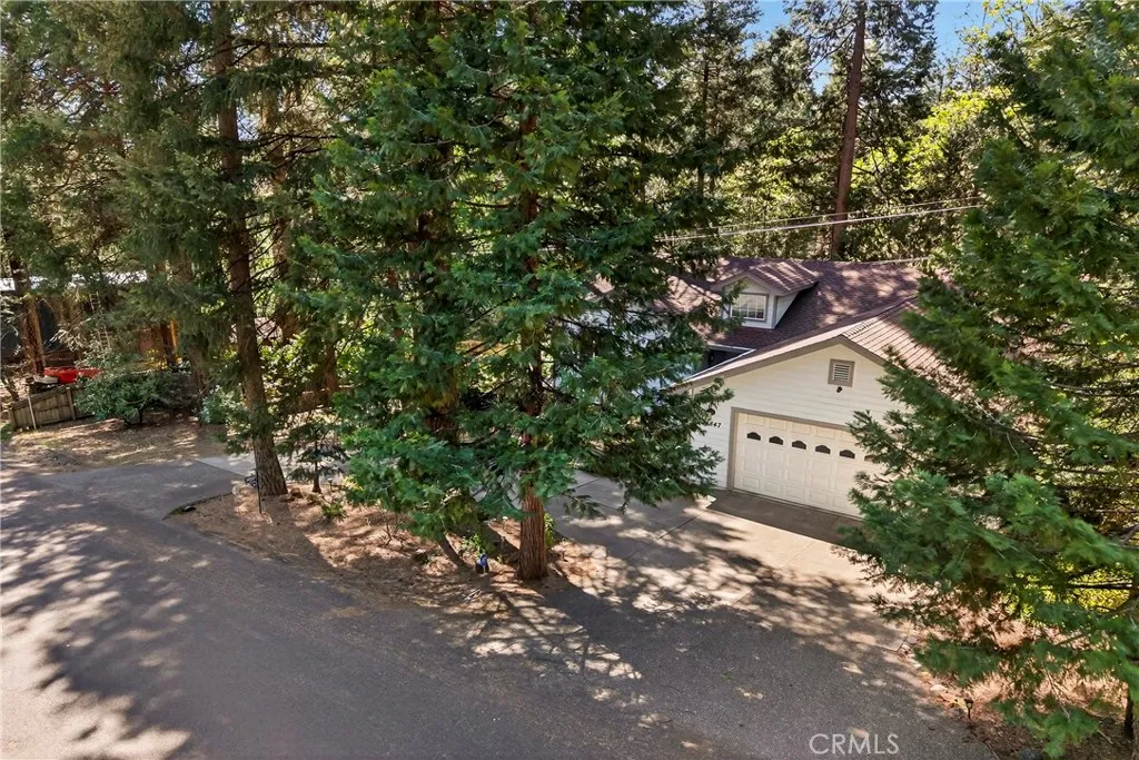 Nestled in the beautiful Magalia Pines is this One Owner Custom Built Home that is ready for a new owner. The owner had the plans drawn and completed the custom home in 2005. Wonderful curb appeal and a circle driveway welcomes you and your guests to the home. The home has an oversized 525 square foot 2-car garage. The composite front deck leads to a 9-foot covered front porch measuring 10X10 and accented with a knotty pine tongue and groove ceiling. The custom wood front door has a glass inlay. Upon entry you notice the open floor plan and the amazing 12-foot vaulted wood beam knotty pine ceiling and 9ft. ceilings throughout. The spacious living room has a custom gas fireplace with tile surround and beautiful wood mantle finishes the space. The large slider and windows open the views of the forest and the ever-changing forest views. The over 200 square foot deck is a fantastic place to entertain. The spacious kitchen has a 10-foot breakfast bar, travertine tiles counters, free standing propane oven/range, dishwasher, built in microwave, garden window and upgraded pull out drawers in the cabinets all overlooking the living room and dining room. Off the kitchen is a large laundry room with utility sink and large built in storage cabinets. Down the over 4-foot-wide hallway are two large built-in cabinets and the bedrooms and baths. The fantastic primary bedroom has great views of the forest through an 8-foot-wide picture window, and the primary bath offers 2 sink vanity with travertine tile counters, fully tiled shower with sliding glass doors and a huge walk-in closet. The g