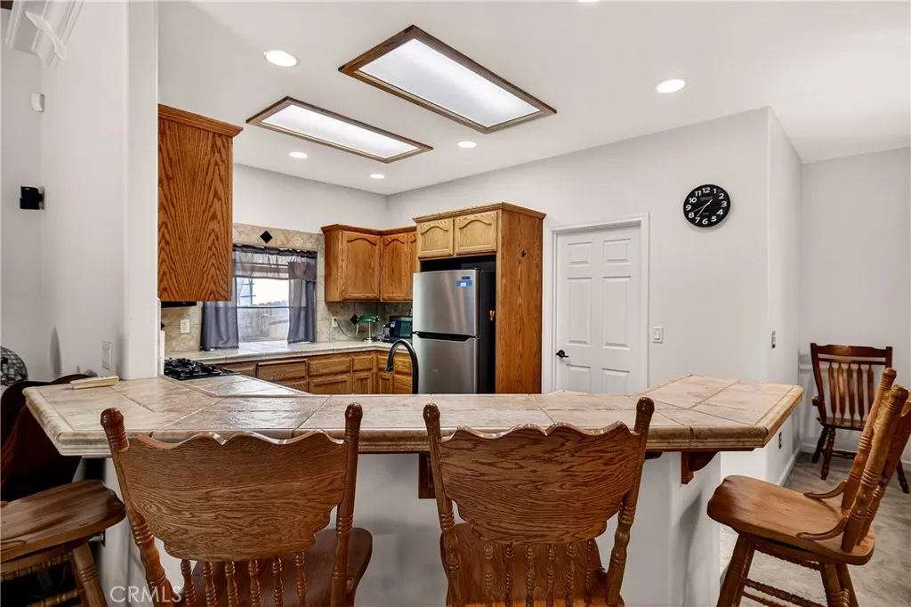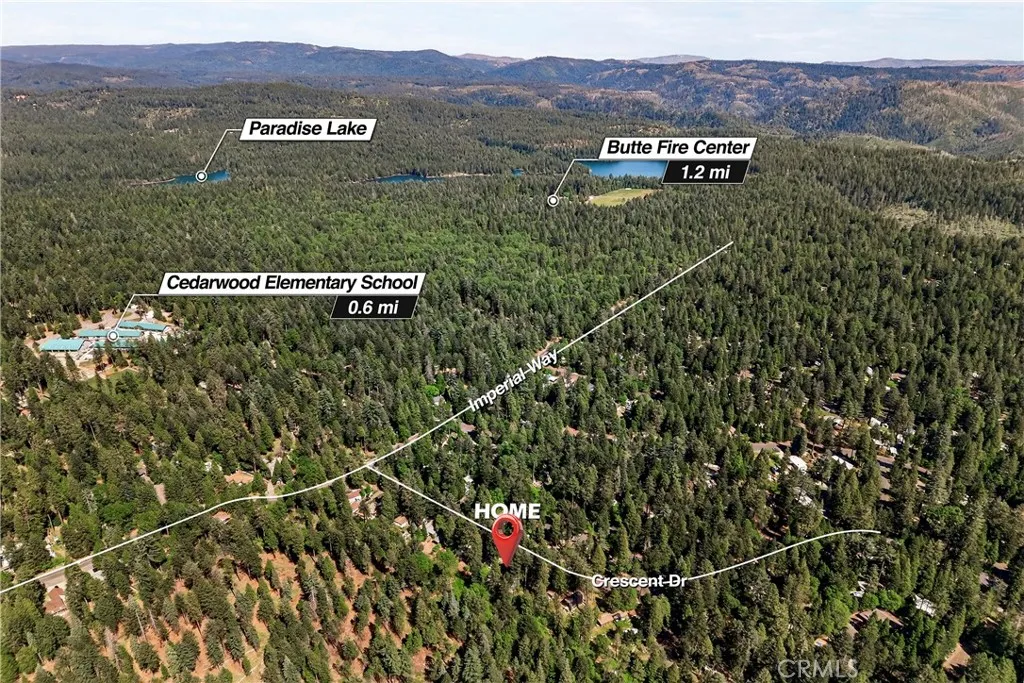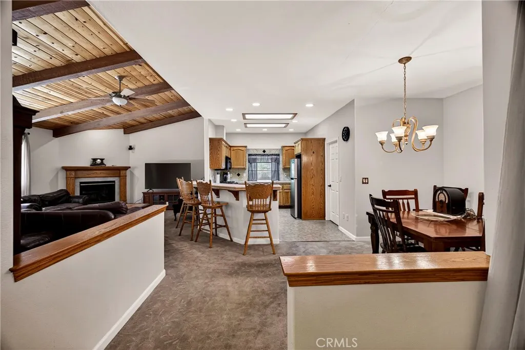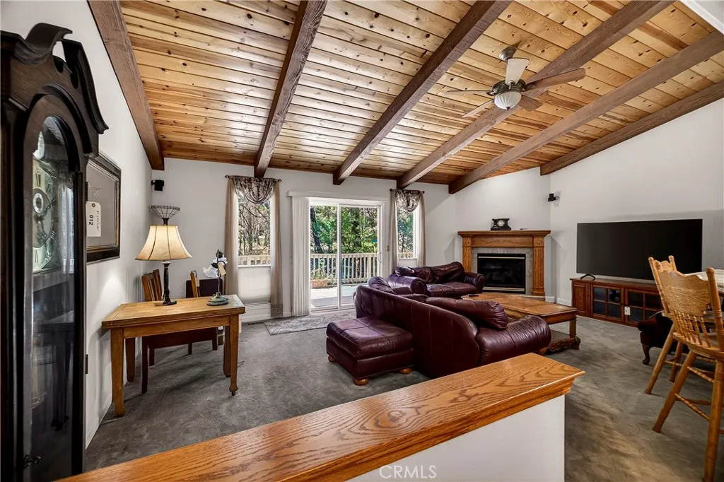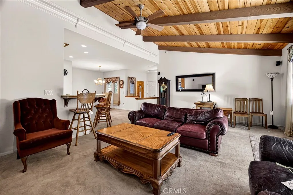 Nestled in the beautiful Magalia Pines is this One Owner Custom Built Home that is ready for a new owner. The owner had the plans drawn and completed the custom home in 2005. Wonderful curb appeal and a circle driveway welcomes you and your guests to the home. The home has an oversized 525 square foot 2-car garage. The composite front deck leads to a 9-foot covered front porch measuring 10X10 and accented with a knotty pine tongue and groove ceiling. The custom wood front door has a glass inlay. Upon entry you notice the open floor plan and the amazing 12-foot vaulted wood beam knotty pine ceiling and 9ft. ceilings throughout. The spacious living room has a custom gas fireplace with tile surround and beautiful wood mantle finishes the space. The large slider and windows open the views of the forest and the ever-changing forest views. The over 200 square foot deck is a fantastic place to entertain. The spacious kitchen has a 10-foot breakfast bar, travertine tiles counters, free standing propane oven/range, dishwasher, built in microwave, garden window and upgraded pull out drawers in the cabinets all overlooking the living room and dining room. Off the kitchen is a large laundry room with utility sink and large built in storage cabinets. Down the over 4-foot-wide hallway are two large built-in cabinets and the bedrooms and baths. The fantastic primary bedroom has great views of the forest through an 8-foot-wide picture window, and the primary bath offers 2 sink vanity with travertine tile counters, fully tiled shower with sliding glass doors and a huge walk-in closet. The g