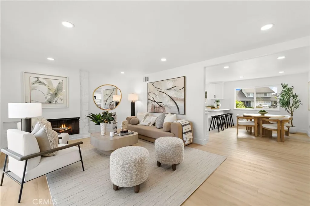 Welcome to a beautifully reimagined home in Huntington Beach, ideally positioned on a quiet cul-de-sac in a highly desirable neighborhood. This home makes an immediate impression with its exceptional curb appeal and inviting presence. This home has been thoughtfully reimagined from top to bottom, with no detail overlooked. Featuring all-new PEX plumbing, a brand-new 200 amp electrical panel, 220V in the garage with EV charging capability, brand-new appliances including a Samsung refrigerator, a fully upgraded HVAC system with new ducting, and all brand-new Simonton windows. Every element has been designed for modern living and long-term comfort. The home offers a highly desirable main-level primary bedroom along with two full bathrooms, providing both convenience and functionality. The kitchen has been completely remodeled and showcases quartz countertops, which are carried throughout the home for a cohesive and elevated finish. Enjoy a prime coastal lifestyle just minutes from the Bolsa Chica Wetlands scenic walking trails, a short drive to PCH and the beach, and close proximity to Huntington Harbour where youll find Trader Joes, waterfront dining, and everyday conveniences.