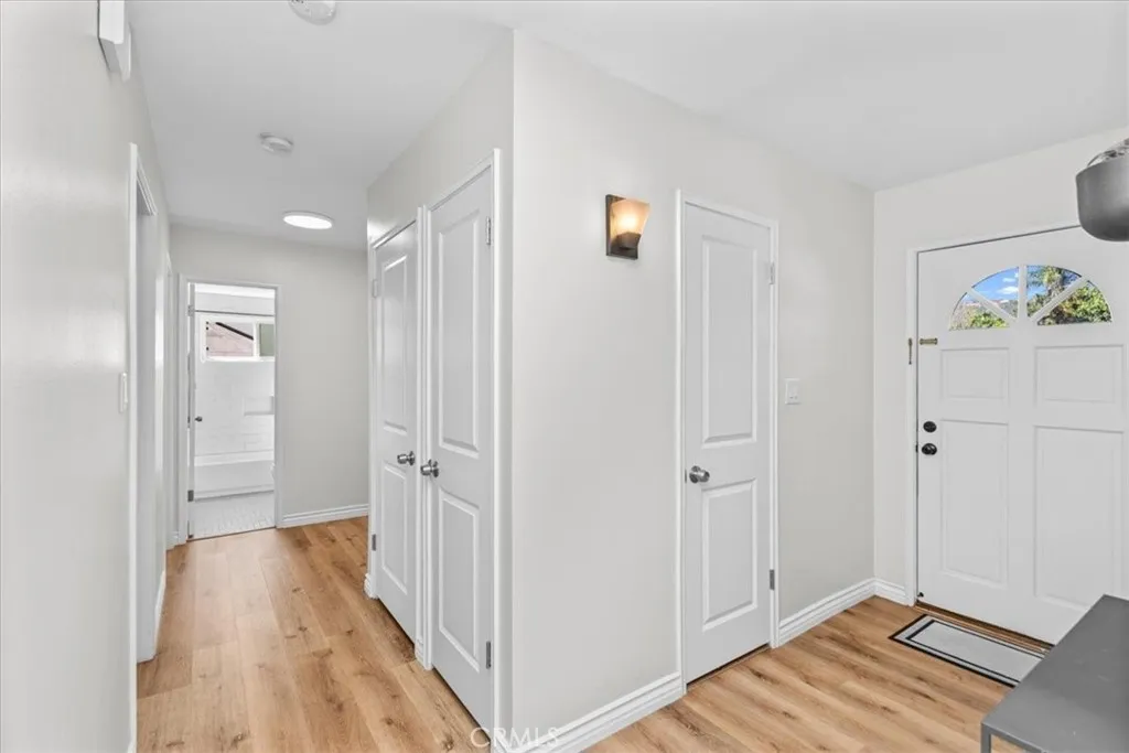 Beautiful 3 bedroom, 2 bath single story home with owned solar! This stunning home has been thoughtfully remodeled throughout, featuring a light and bright open kitchen with quartz countertops, stainless steel appliances, and modern finishes. The inviting family room offers a cozy fireplace, perfect for relaxing or entertaining. Enjoy stylish upgrades including remodeled bathrooms, luxury vinyl plank flooring, newer windows, recessed lighting, and ceiling fans throughout. Step outside to a spacious, private backyard complete with a pergola, low maintenance turf, and a mature tree, plus no rear neighbors for added privacy. Ideally situated on a quiet street in one of Poways most desirable neighborhoods, this home is located within the award-winning Poway Unified School District and just minutes from top-rated schools, shopping, dining, and easy freeway access.