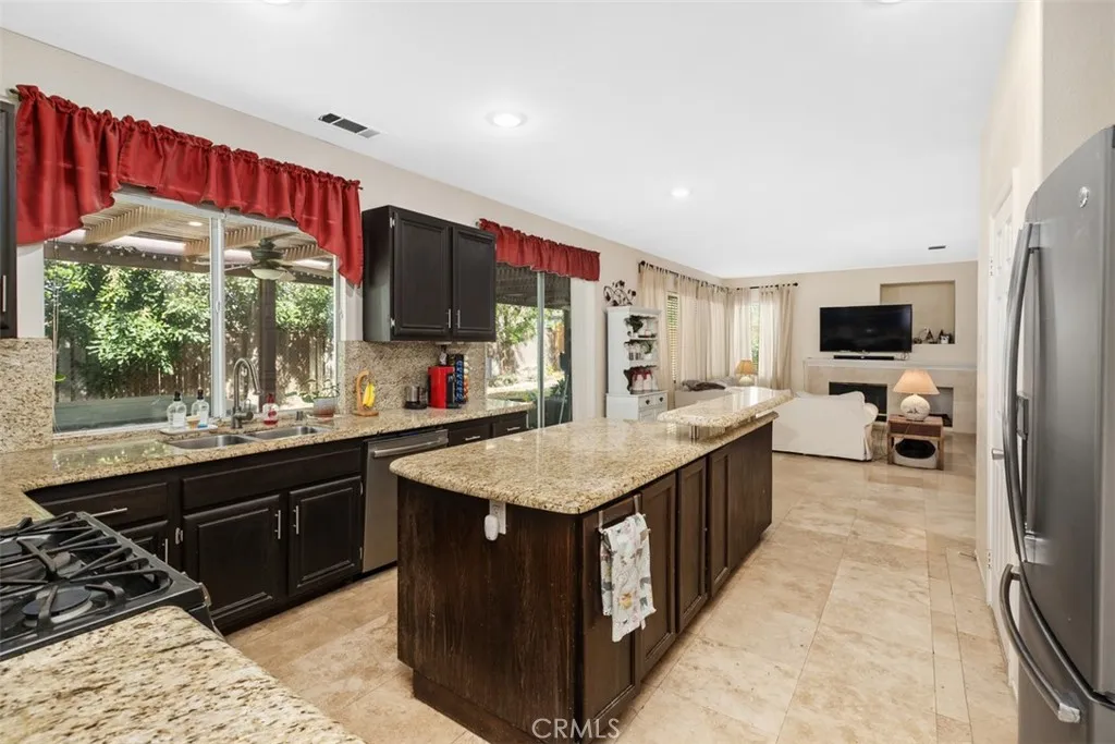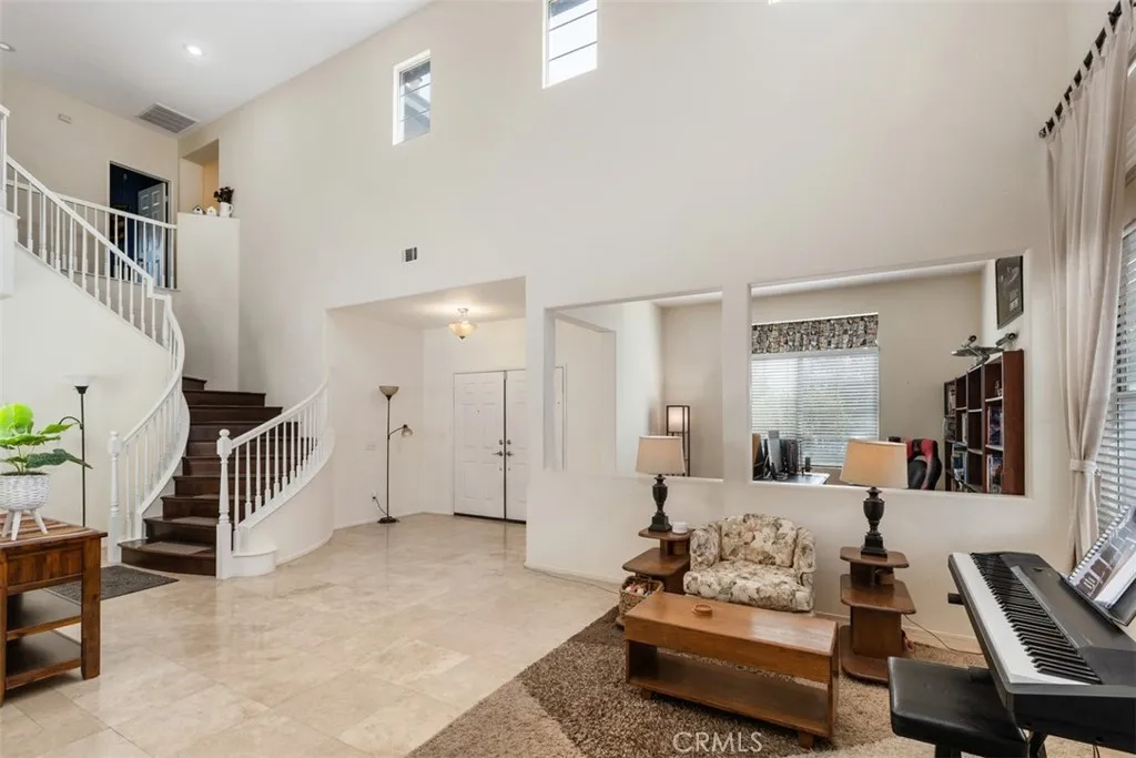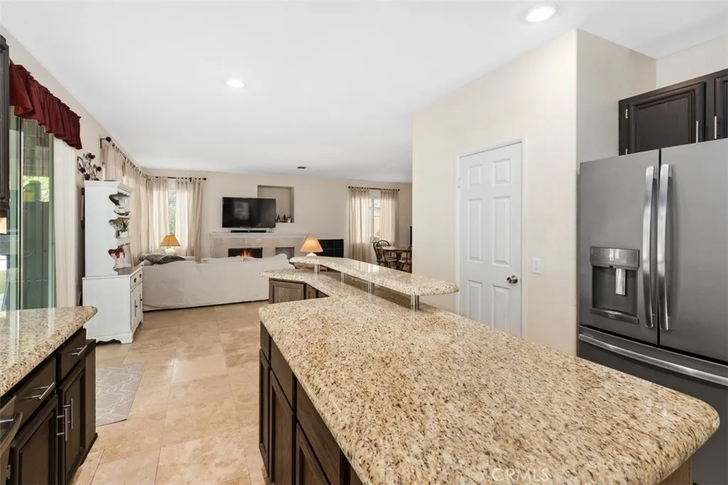 Desirable 4-bedroom, 3-bath home with extra space downstairs perfect for an office or a potential 5th bedroom. As you step through the double entry doors, youre welcomed by high ceilings and an abundance of natural light. Interior appointments include travertine flooring, engineered hardwood, and upgraded light fixtures. Downstairs features a formal dining and living room combo, plus a kitchen with granite counter tops, island, GE slate-finish appliances, pantry and the refrigerator is included. The kitchen opens to a family room with a cozy firplace with polished marble surround. There is a full bath on the first floor. The laundry room is off the garage and includes the washer & dryer. The primary suite includes his-and-hers closets, a separate tub and shower, and a vanity with dual sinks and vessel sinks with brushed silver finish faucets. Three more bedrooms share another bathroom with vessel sinks and rubbed bronze finish faucets. The backyard features a covered patio, private, above-ground spa and plenty of space for entertaining. Home also has a three-car garage. The highly sought after community of Paloma Del Sol offers incredible amenities including 5 community pools, basketball courts, tennis courts, tot lots, recreation areas throughout, several miles of walking trails & more. Located in the desirable Temecula School District, and minutes to shopping, wineries and I-15.