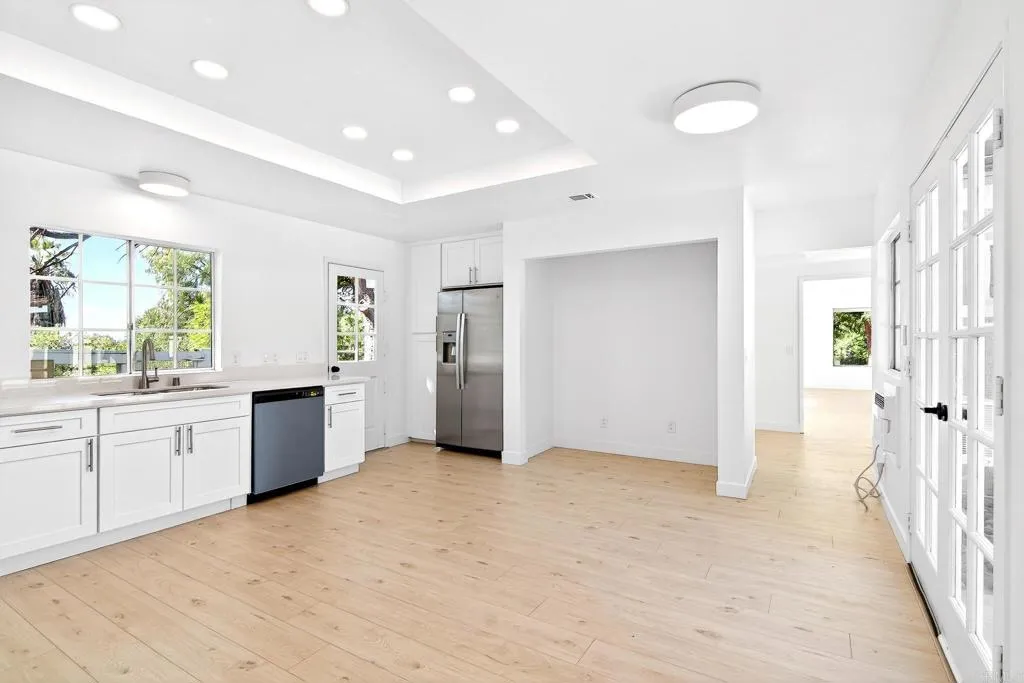 Tucked toward the end of a quiet, no-through street, offering a cul-de-sac-style setting with minimal traffic and added privacy, this single-level residence is privately set on approximately 2.65 acres and welcomes you with a long, tree-lined driveway framed by mature landscaping and a peaceful Wine Country setting. The approach creates a true sense of arrival, while the home showcases a clean ranch-style faade, attached garage, wide frontage, and low-maintenance grounds complemented by shade trees and thoughtfully spaced plantings. The backyard unfolds as a private outdoor retreat, featuring a pool and spa surrounded by mature trees and scenic natural surroundings. Multiple patio areas provide space for entertaining, relaxing, and embracing the indoor-outdoor lifestyle. The expansive lot offers a blend of usable land and natural landscape, with room for gardening, recreation, or future possibilities, while a gated side yard and extended pathways enhance functionality and access throughout the property. Inside, the home is light and bright with fresh interior paint, new light fixtures and electrical outlets throughout, durable vinyl plank flooring, and a functional single-level layout designed for comfortable living. Two spacious living areas with high ceilings create an open, airy feel, enhanced by large windows and sliding glass doors that bring in natural light and provide seamless access to the outdoor spaces, while a fireplace adds warmth and character to the main living area. The updated kitchen features white shaker cabinetry, white crystal quartz countertops with a