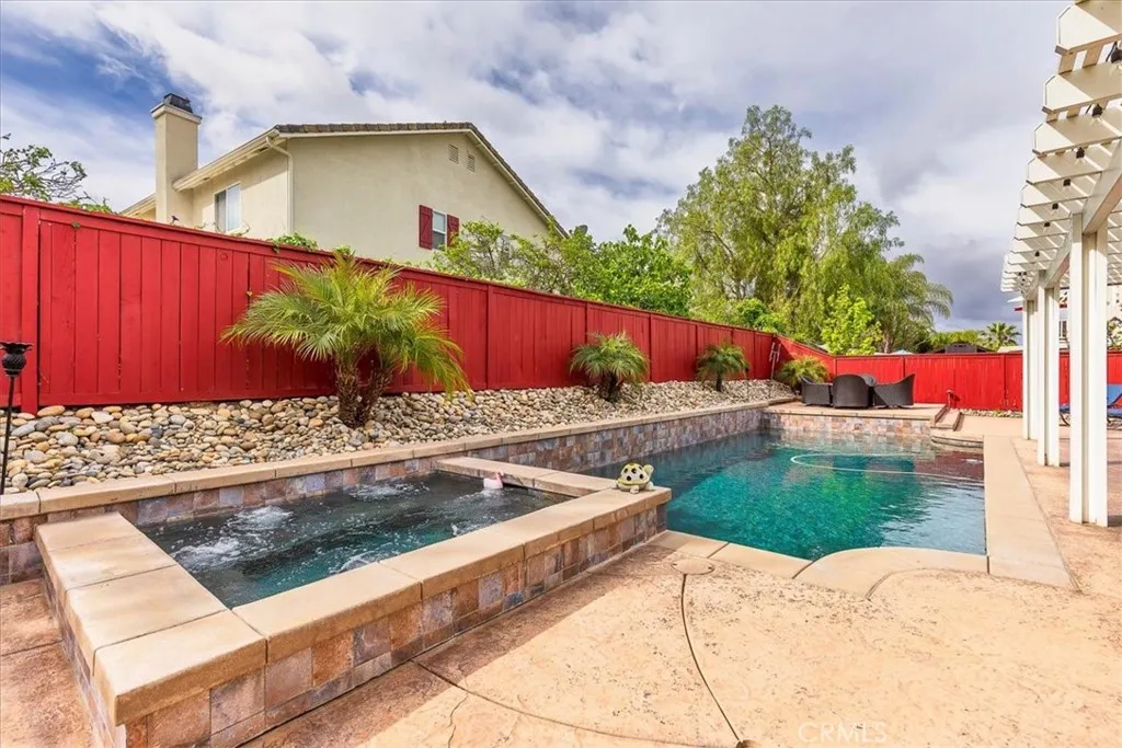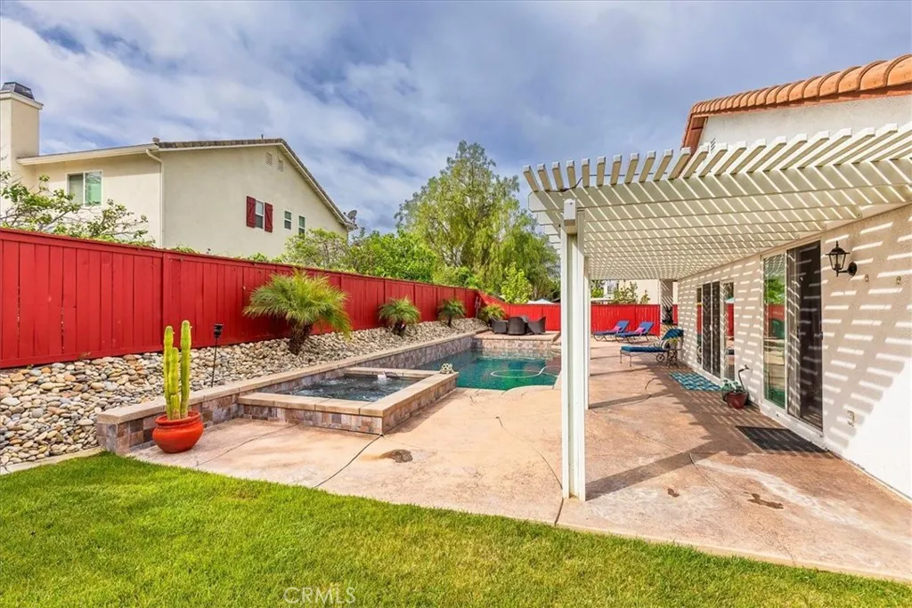 Welcome Home to your custom resort in the heart of Temecula. Your open ranch style home is located in the Highly Desirable community of Serena Hills at the end of a quite cul-de-sac. As you enter, you are greeted by the fresh and inviting foyer and tile entry hall awaiting your family decorations. The entry hall opens to the awe inspiring Heart of your home with an open kitchen and living room design, high vaulted ceiling, completed with a custom split sliding door to the pool & spa. The kitchen area is the family and entertainment spot with granite counters, matching & complimenting backsplash, wine refridgerater and stainless appliances. The oversized granite island features a large stainless basin sink, and an abundance of counter area that overlooks the living room and pool. The spacious living room is complete with dual burning fireplace for cool winter evenings or open the split sliding door for cool summer nights. Your backyard is custom designed for entertaining with a private pool & spa and outdoor kitchen. The full outdoor kitchen showcases kitchen matching granite counters with a stainless & gas piped grill, refrigerator, ice maker and completed with a rise sink. Soak in the resort lifestyle lounging poolside while the family or guests play in the pool or one of the large side yards. Your primary room is complete with high vaulted ceilings and direct access to the spa. The primary bath exudes elegance with a custom tile accented oversized shower, deep soaking tub, backlit & defogging mirrors and matching granite counters. Enjoy family dinners in the formal dining