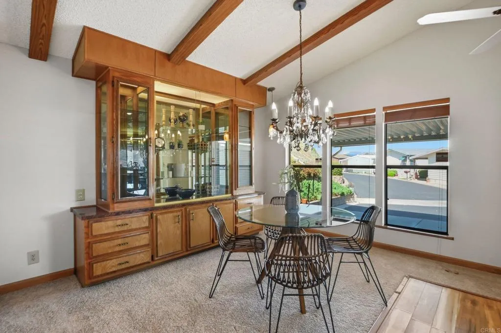 Take advantage of this opportunity to own a view home at the top of a cul-de-sac, in the highly sought-after Lake Jennings Park Estates, a gated 55+ community known for its scenic setting and resort-style amenities. This well-maintained 2-bedroom, 2-bath home offers generous living space, including a dining area, spacious living room, separate family room, and a dedicated office area, providing flexibility for a variety of needs. Enjoy beautiful mountain views and abundant natural light throughout. The kitchen features a gas cooktop, spacious layout, and ample counter space, ideal for everyday living and entertaining. Additional highlights include low-maintenance landscaping and excellent privacy. Residents enjoy a heated pool and spa, clubhouse with full kitchen and fireplace, library, game and card rooms, dog park, and RV parking, all with a low monthly HOA and no space rent. Conveniently located near shopping, dining, and freeway access, this home offers comfort, convenience, and lifestyle in one of Lakesides most desirable 55+ communities.