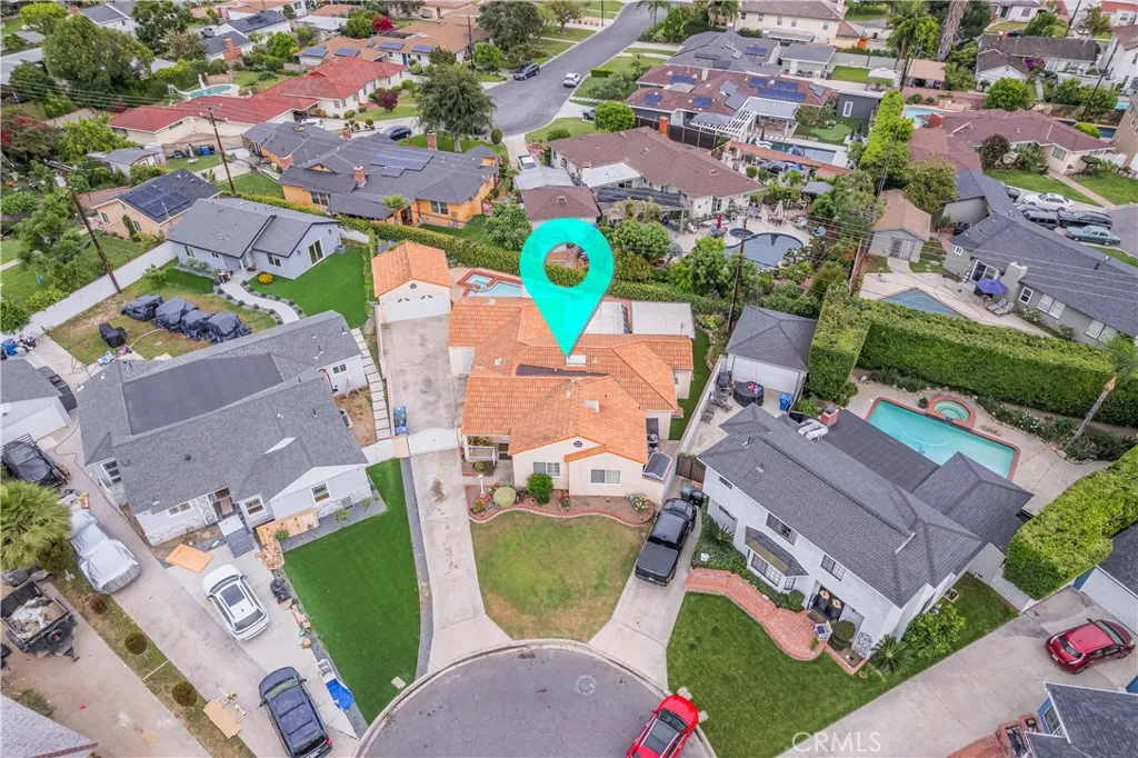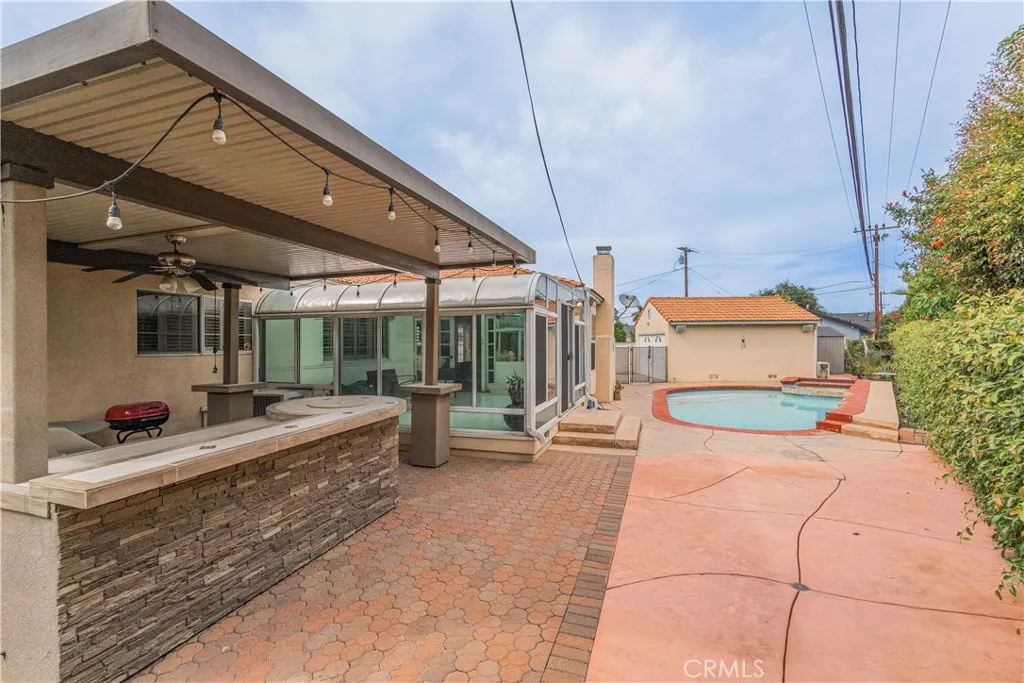 Welcome to this beautiful 4-bedroom, 2.5-bath pool home located on a quiet cul-de-sac in the desirable North Downey neighborhood. This light-filled home offers comfort, privacy, and great space for entertaining. Inside, youll find a bright formal living room that leads into a remodeled kitchen with quartz countertops, gray cabinets, stainless steel appliances, and a large island with seating. The kitchen opens to a cozy family room with a fireplace and French doors, creating a great indoor-outdoor flow. A sunroom overlooks the sparkling pool and spa, along with the BBQ entertaining area, making it the perfect spot to relax. The primary bedroom has direct access to the backyard and its own half bathroom. There are three additional bedrooms, a full bathroom with dual sinks, and a third bathroom with a shower that also works as a pool bath. The backyard is perfect for entertaining, featuring a sparkling pool and spa, BBQ area, outdoor bar, and plenty of space to enjoy. Theres also a detached 2-car garage and a long driveway for extra parking. Conveniently located near shopping, dining, and Porto's Bakery & Cafe, this home has everything you need.